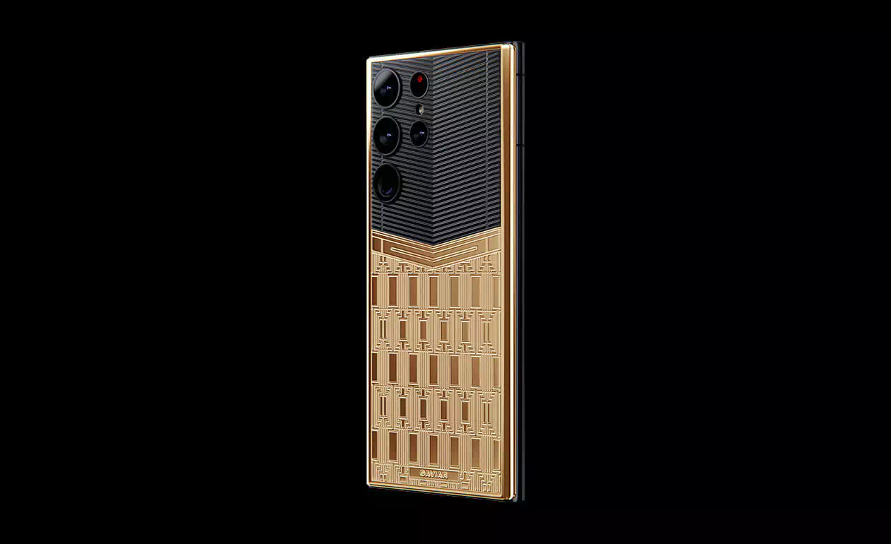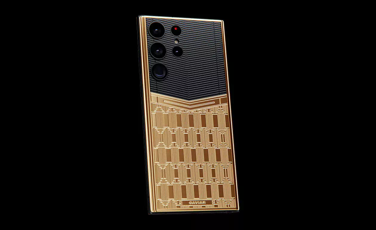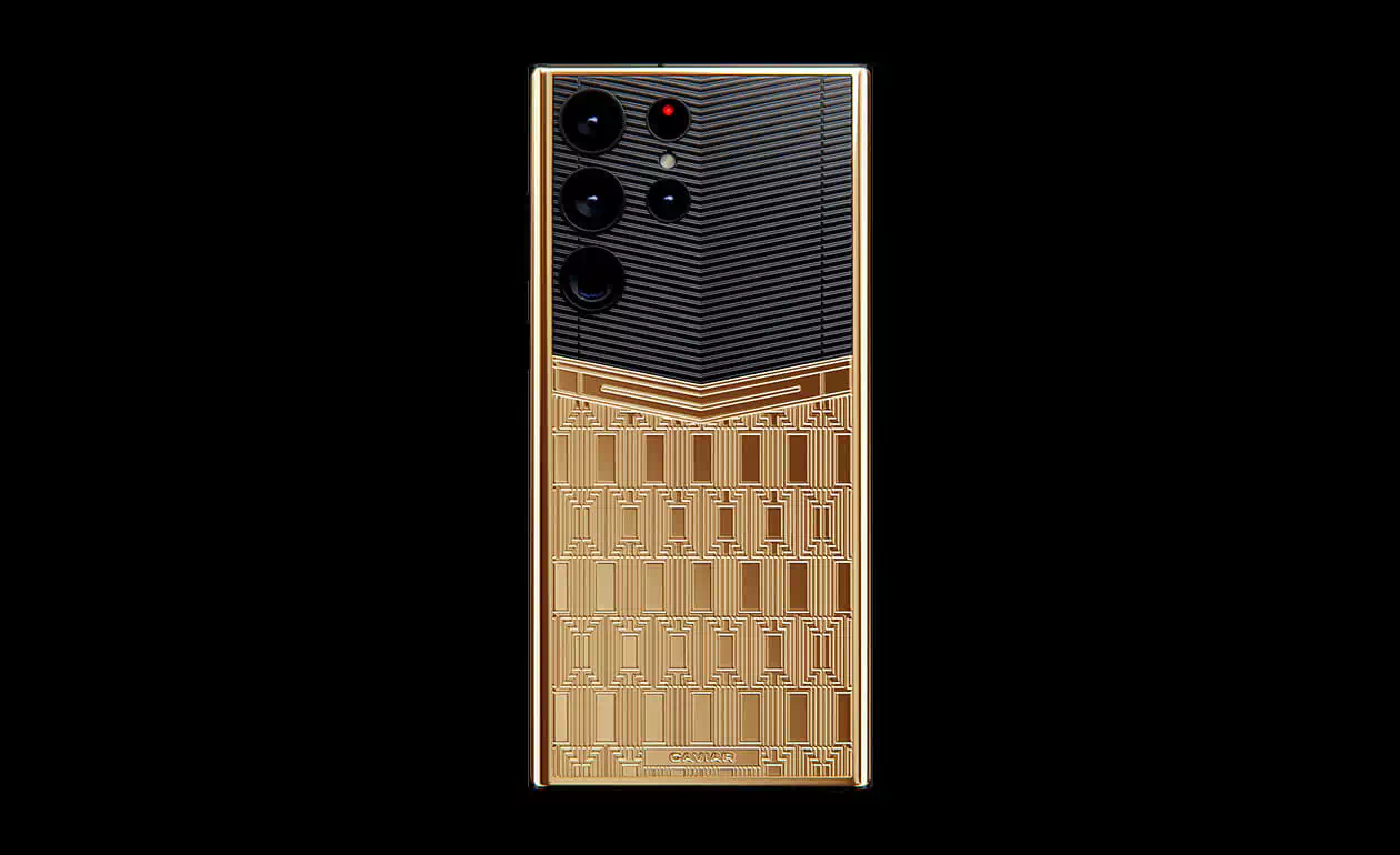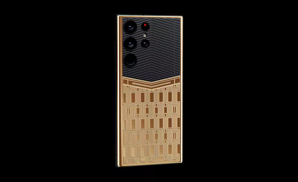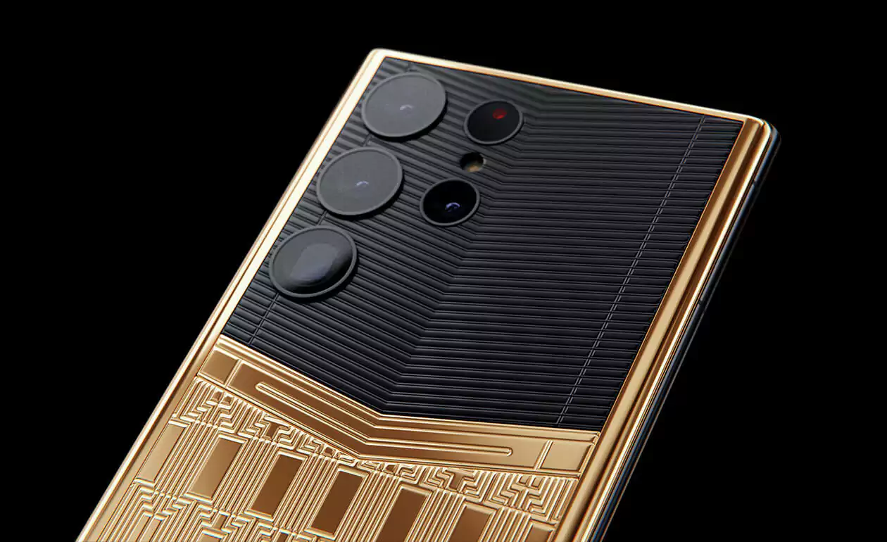 The exquisite design of the Samsung smartphone by Caviar implements the Art Deco style. Its body is made of shock-resistant titanium with a black PVD coating and an eye-catching relief. The back panel is covered with gold of the highest standards and decorated with a voluminous rhythmic pattern, inspired by the grand works of art deco masters.