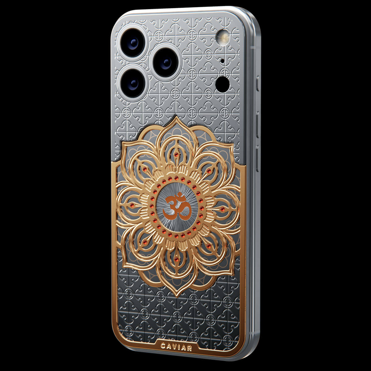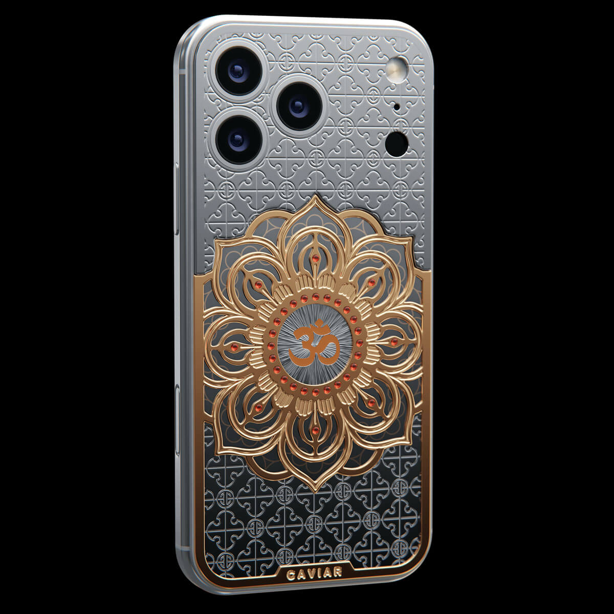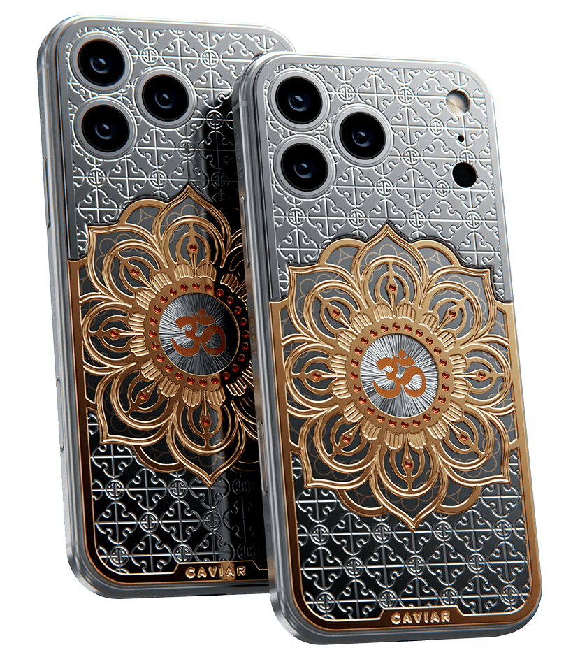 The OM model by Caviar embodies Eastern philosophy. At the heart of the composition is a three-dimensional lotus — a symbol of enlightenment — inlaid with fine jewelry enamel. At the very center of the flower shines the «Om» symbol, a reminder of balance, inner peace, and the energy of the universe.