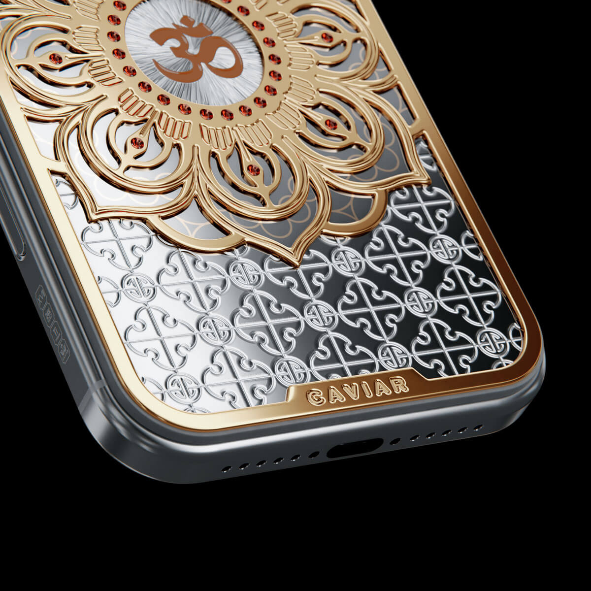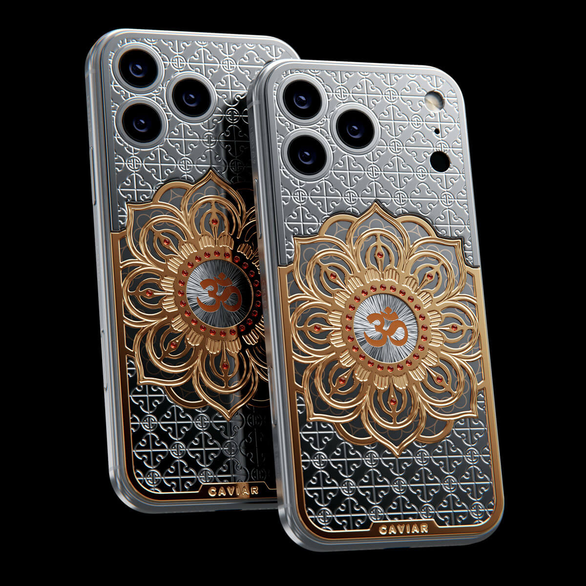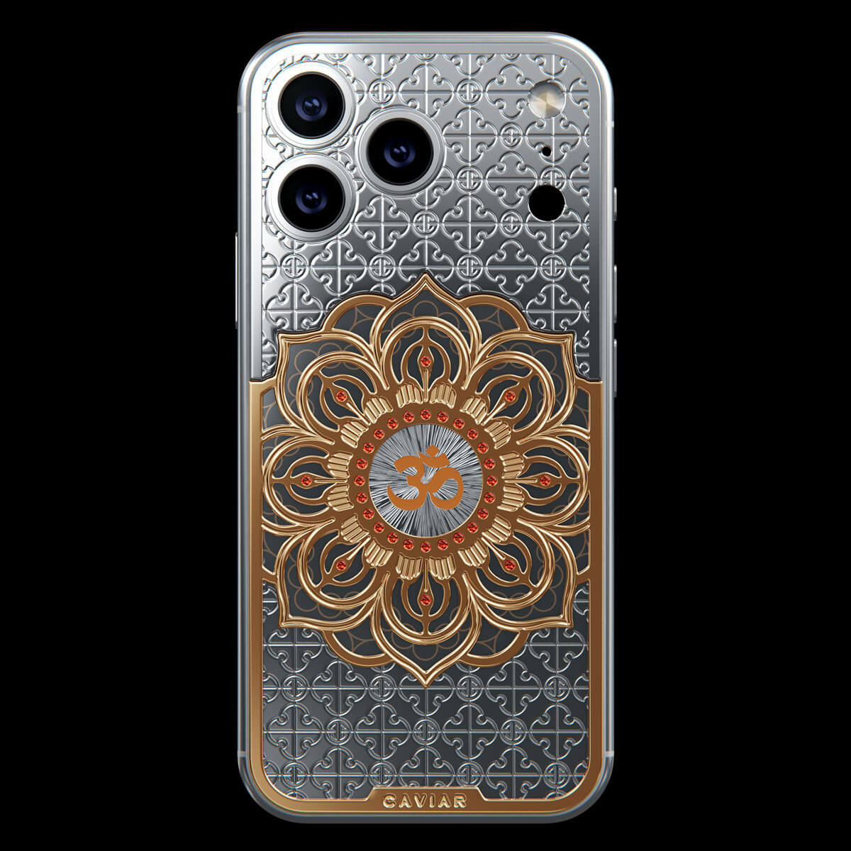 The OM model by Caviar embodies Eastern philosophy. At the heart of the composition is a three-dimensional lotus — a symbol of enlightenment — inlaid with fine jewelry enamel. At the very center of the flower shines the «Om» symbol, a reminder of balance, inner peace, and the energy of the universe.