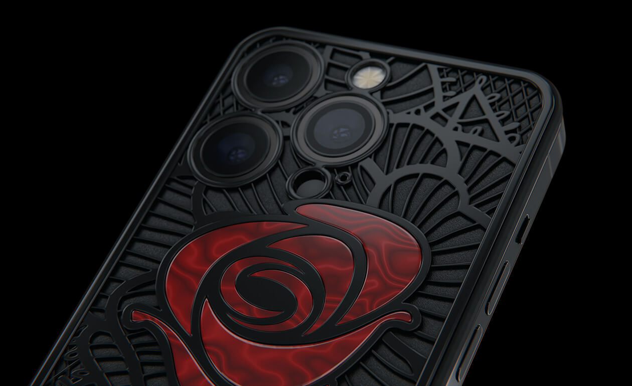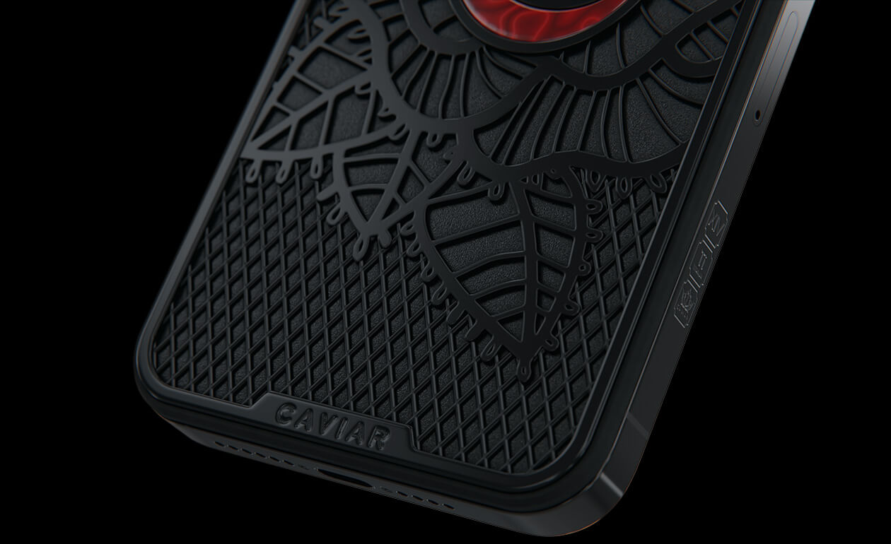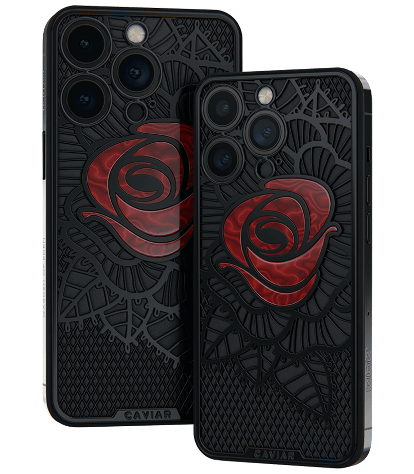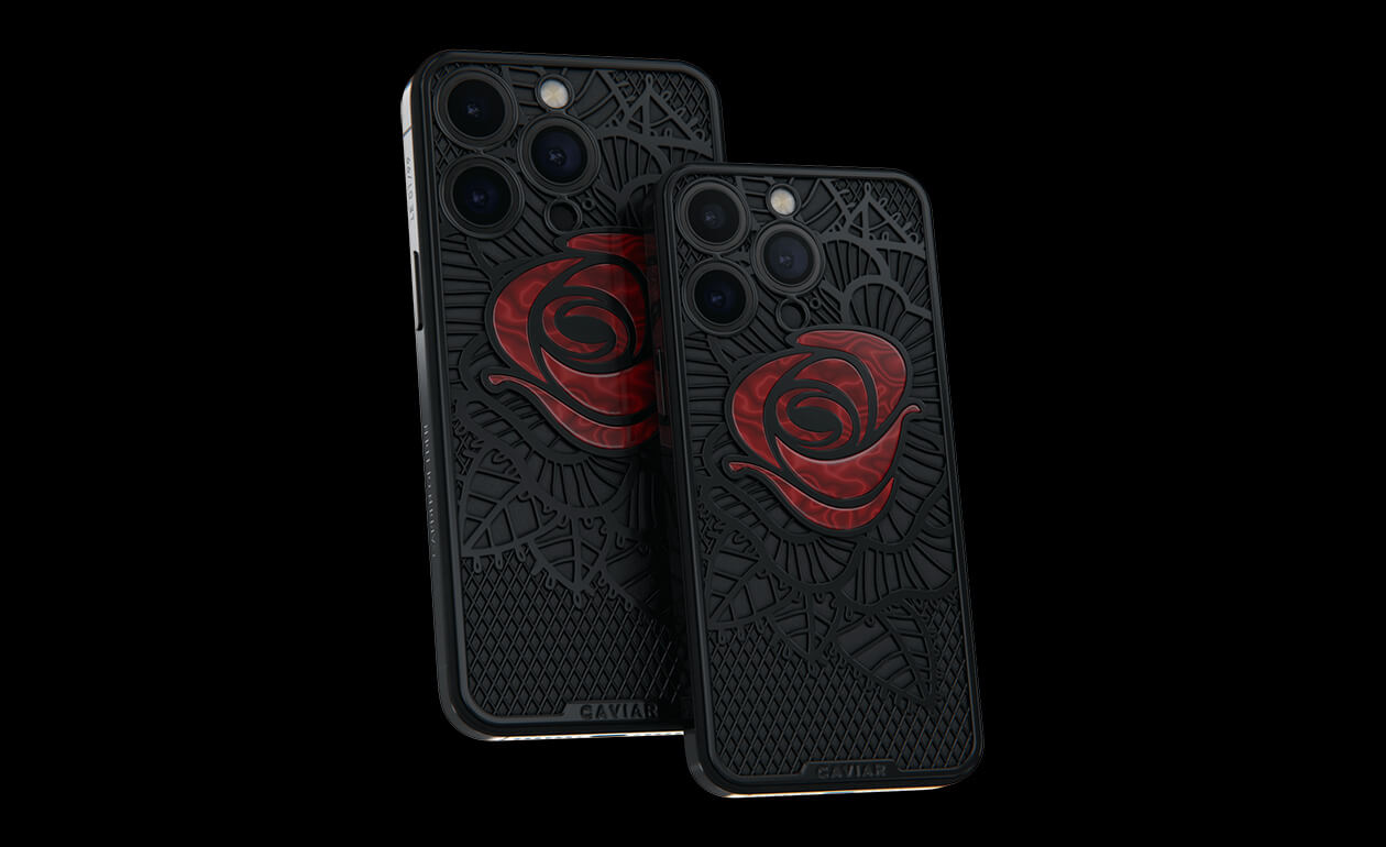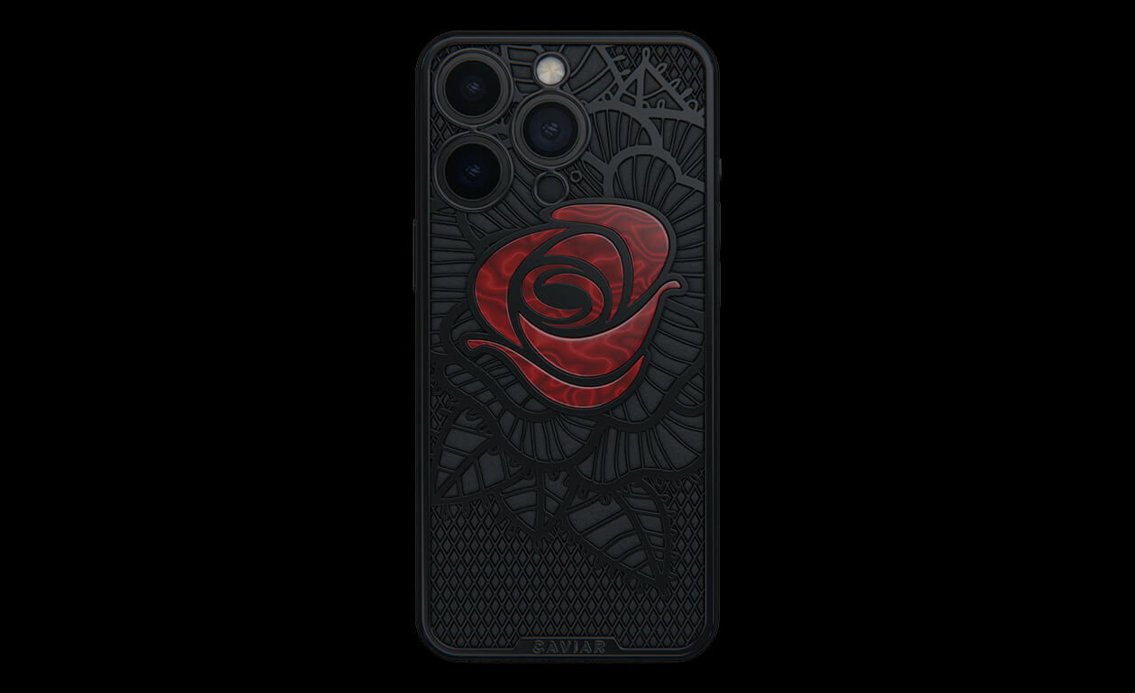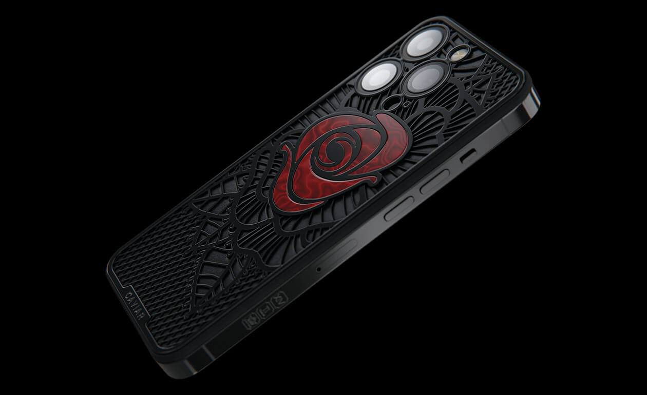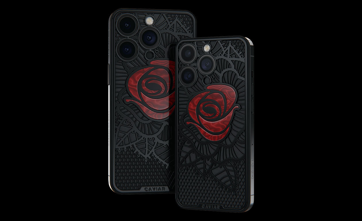 Caviar’s designers were inspired by the Old Testament story and created a smartphone with a red rose, which is shaded by black leaves, made of lightweight titanium with PVD coating.