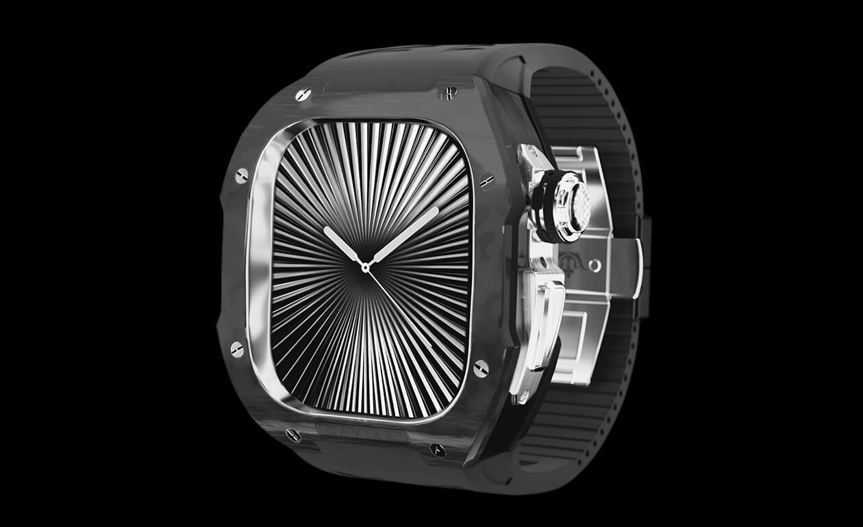 Cold determination and overwhelming strength come together in the Apple Watch 10 Avalanche case. The black carbon strap symbolizes the raw power of nature, like a swift avalanche rushing down mountain slopes. The silver clasp and crown reflect the icy purity and sparkle of snow on sunlit peaks. Avalanche is an accessory for those who appreciate the perfect balance between dynamism and tranquility. Let Avalanche complement your style.