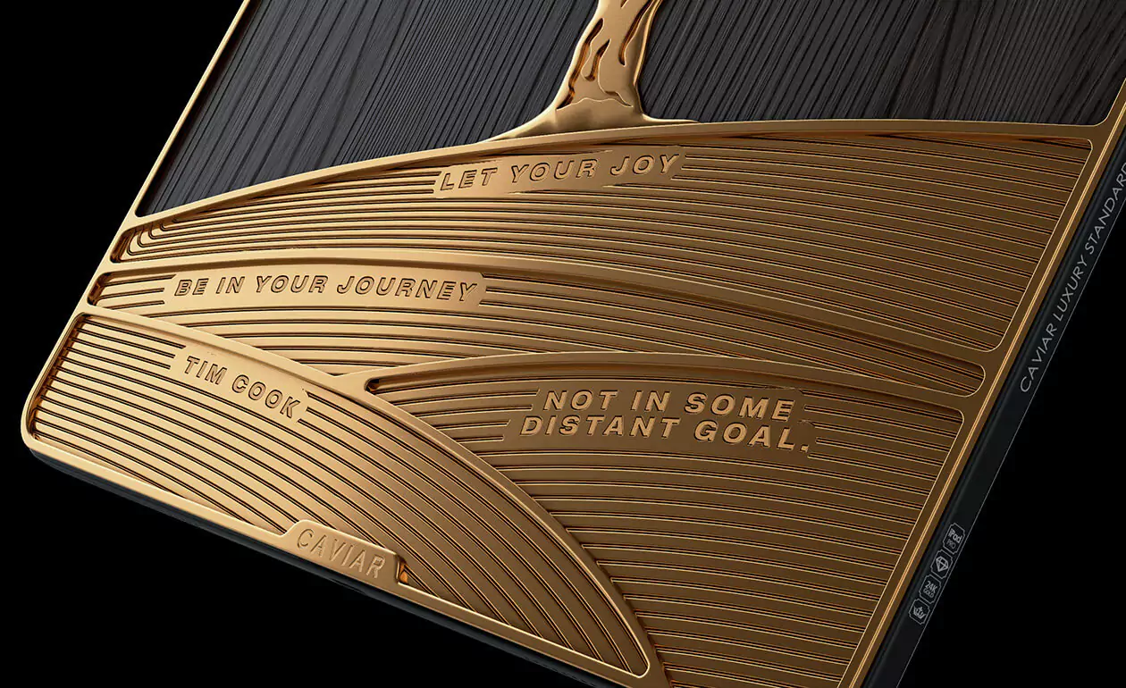 Нижнюю часть модели украшает важное напоминание Тима Кука «Пусть ваша радость будет в вашем путешествии, а не в какой-то далекой цели» в виде гравировки по дереву.