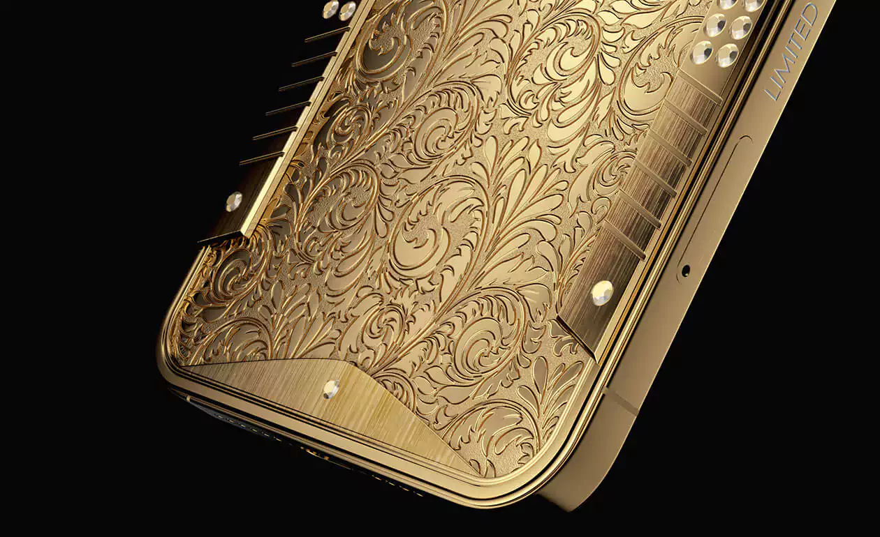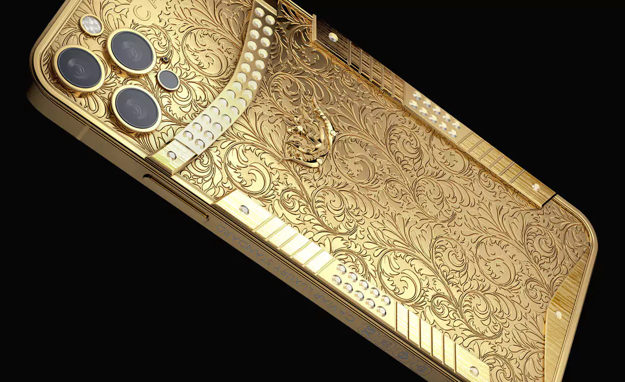 An ingot of solid 18-carat pure gold with a scattering of diamonds is now in your hands. The Caviar iPhone 14 Pro Victory Solid Gold is a luxury smartphone in the most exquisite case.