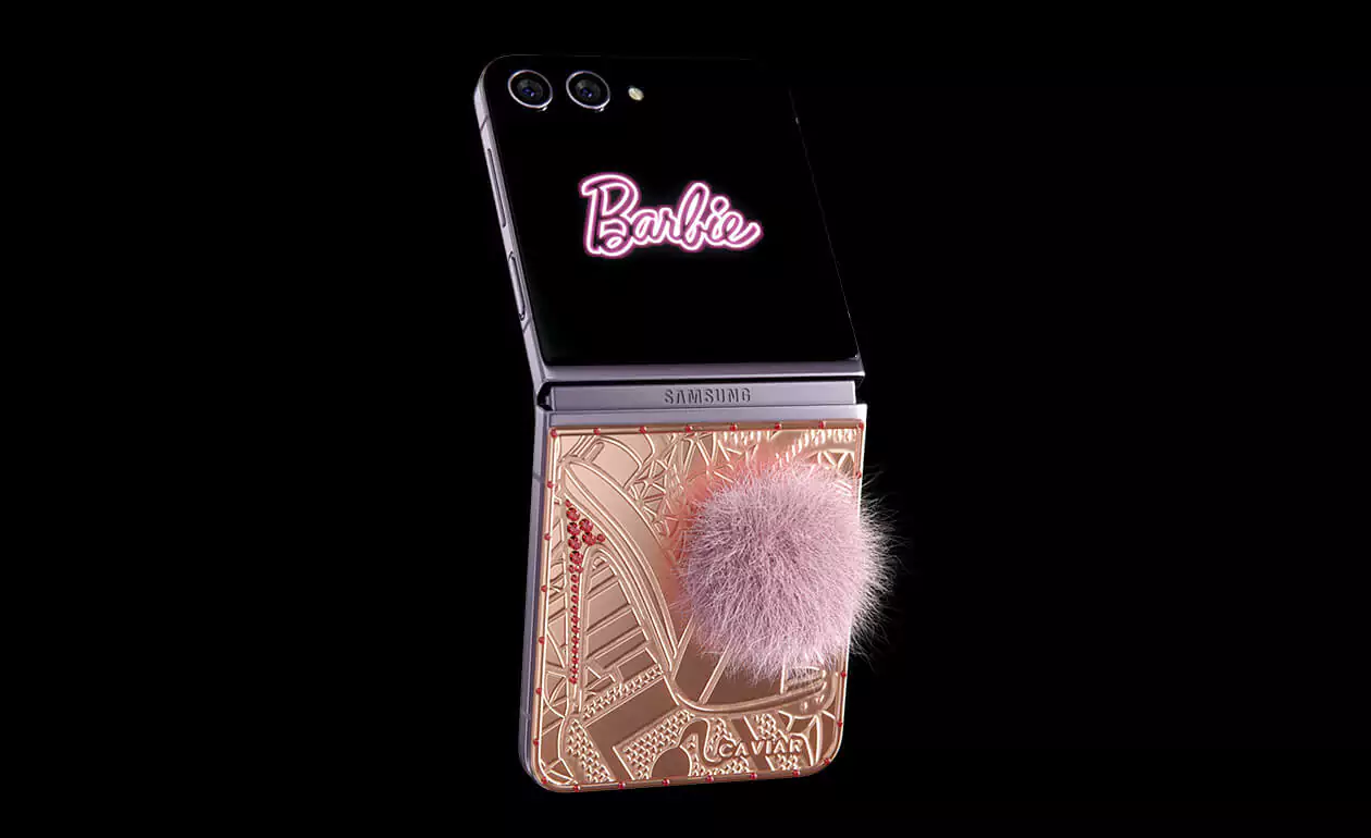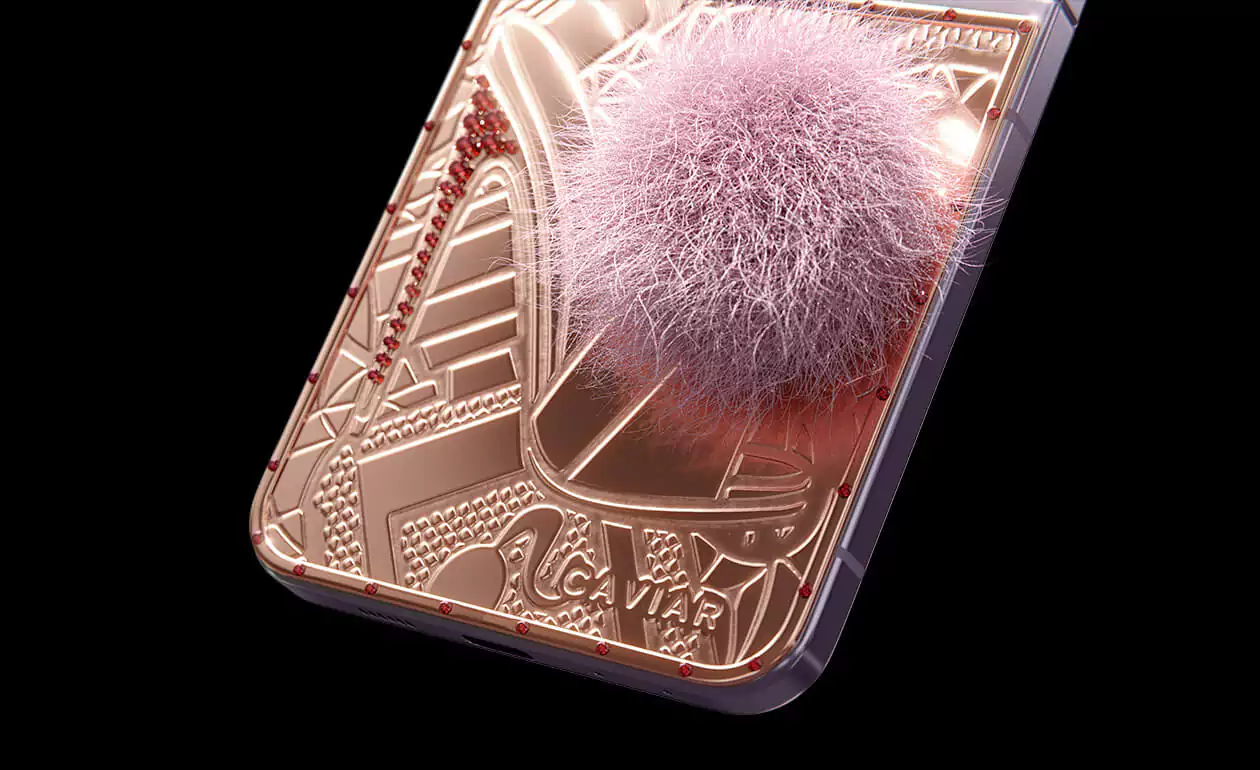 Prepare to be dazzled by the custom Samsung Z Flip 5 by Caviar. Glam Vibes embodies gilded delight with fluffy whimsy. A technology toy that marries sophistication and playfulness. Crafted from the purest 24K gold, its engravings tell a story of extravagance and charm. But it's t fluffy trim in a luscious shade of pink that steals the show, lending charm to your every flip. Let your inner Barbie shine as you embrace a world of golden enchantment and sassy glam vibes.