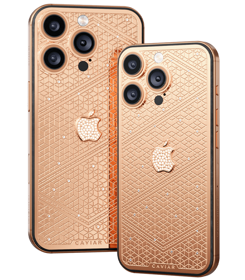 Caviar's masters have captured the golden sunlight reflections in the iPhone's body. The vivid asymmetry of lines symbolizes creative chaos and the quest for an antique ideal. We have complemented this golden extravaganza with a sprinkling of chrystals. At the center - a precious apple made of chrystal mosaic.