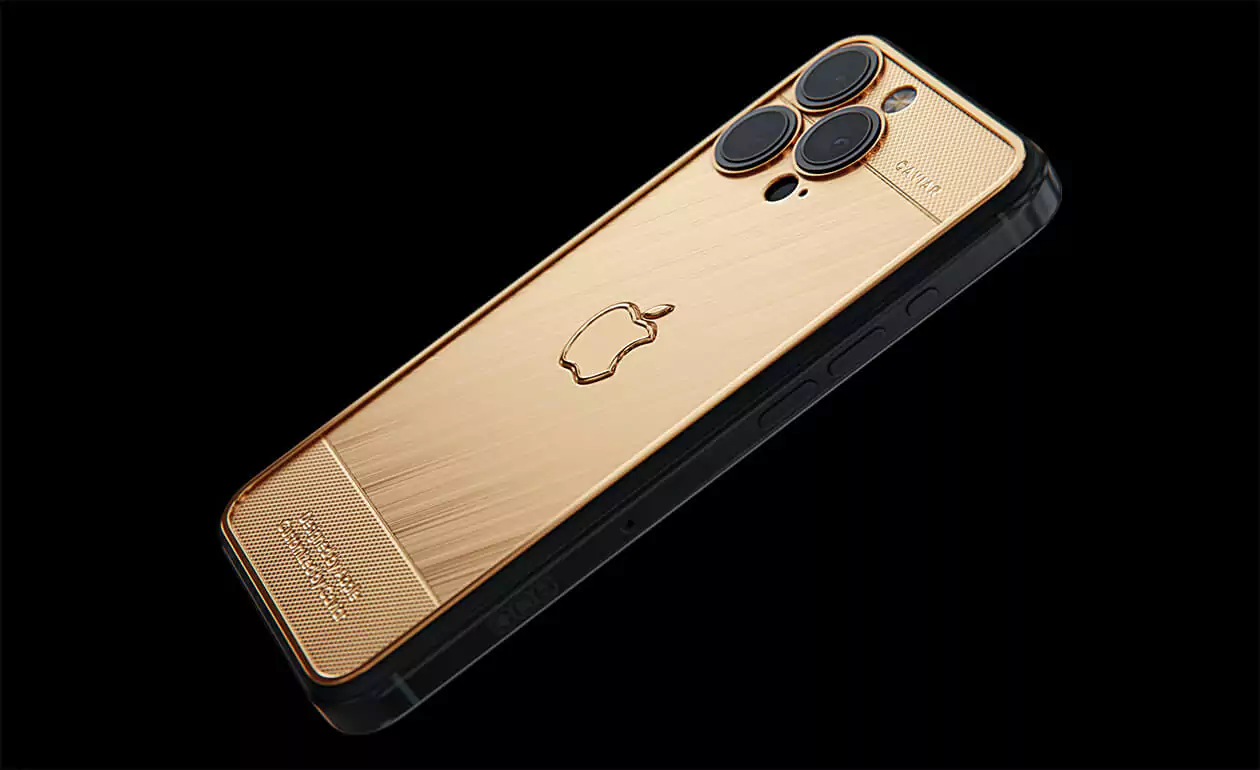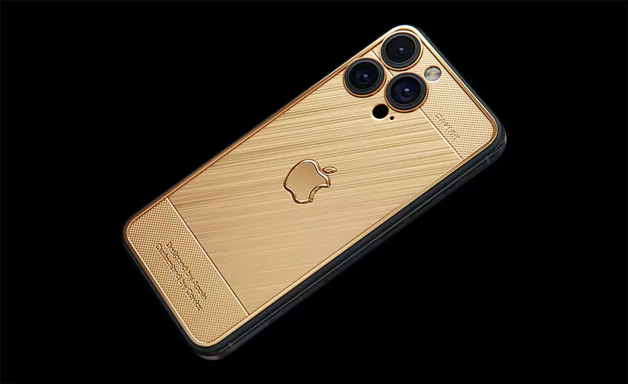 iPhone 16 for those who value luxury. Expensive phone chassis covered with gold of the highest standards. Smartphone, connecting high technology and the pursuit of prosperity. The luxurious Apple logo, made entirely of gold, turns the device into a jewelry masterpiece.