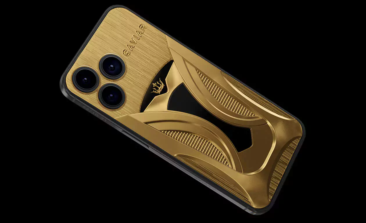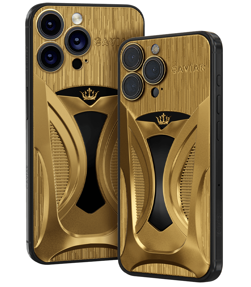 What do you think will always be in value and demand: gold or high technology? We don't feel like choosing, so let us introduce the new iPhone 14 Pro design made from tough rocket-grade material and laser-engraved in gold. The synthesis of luxury and technology in the new Caviar iPhone 16 Pro Excellence Gold Titanium.