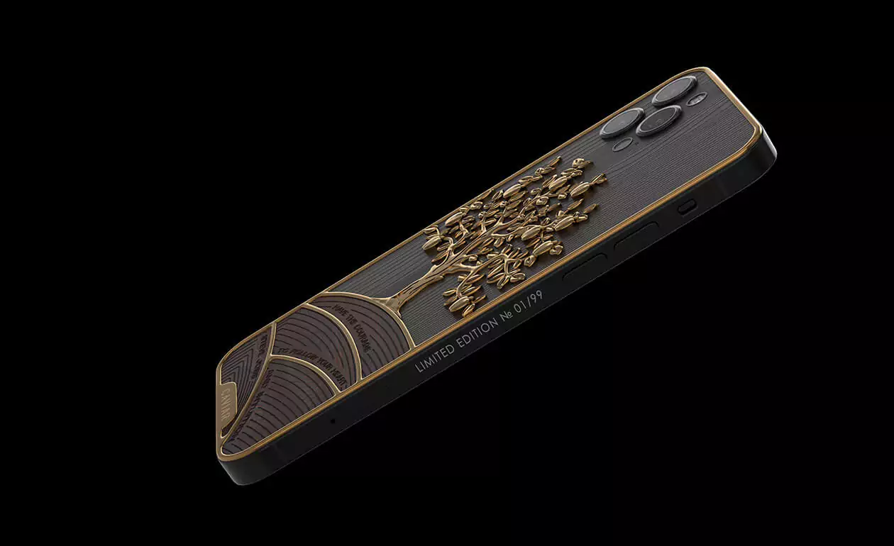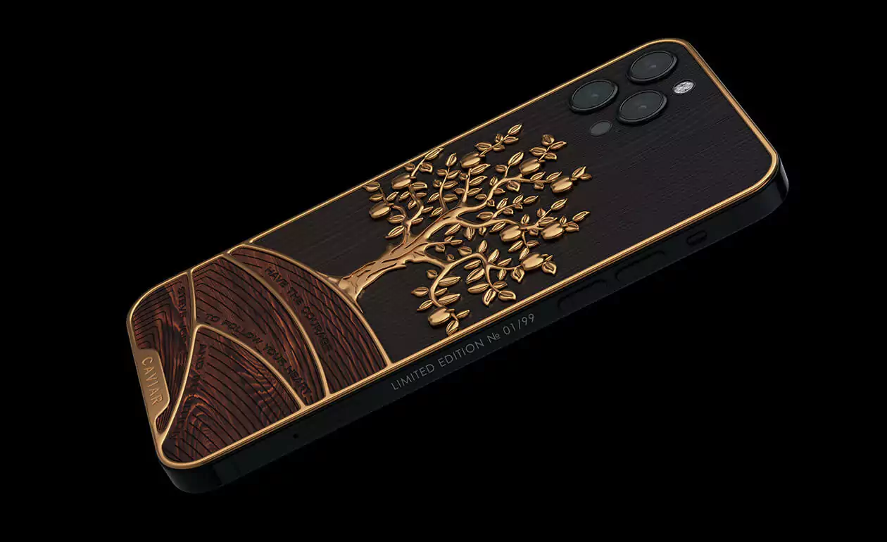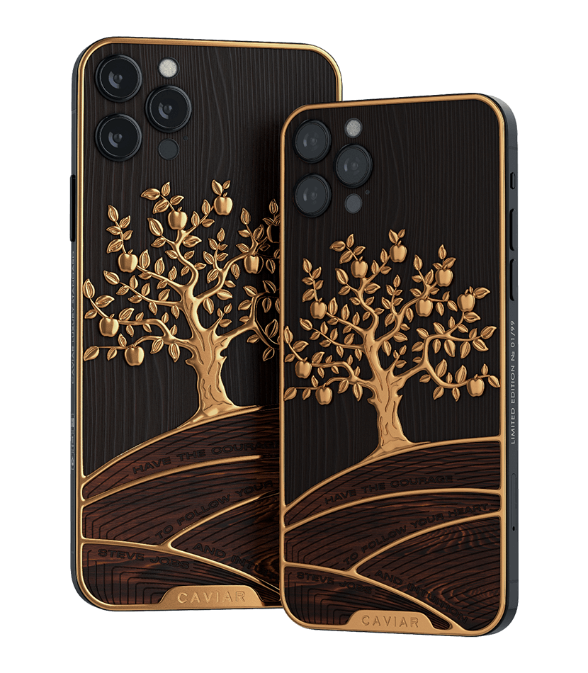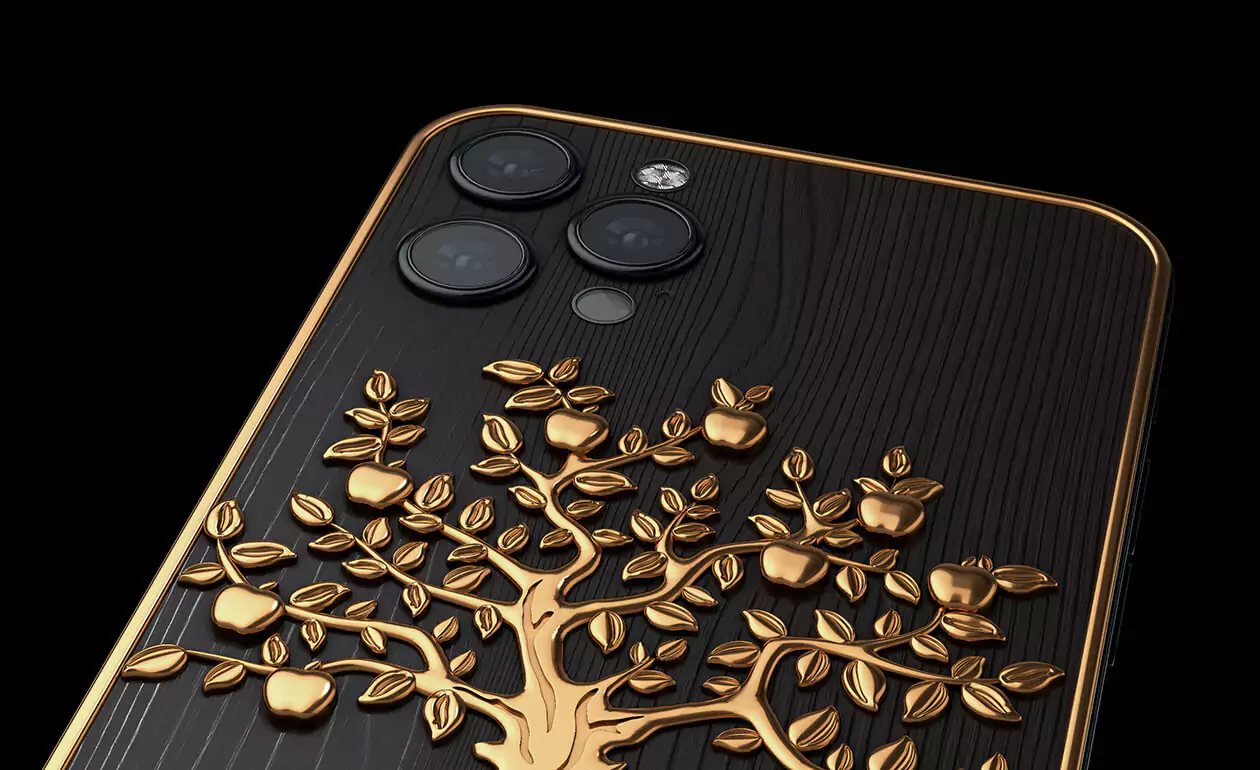 The combination of the elite wood of a real apple tree expresses excellent taste and sophistication. Gilded wood with gilded apples give the phone a touch of uniqueness and shine, and demonstrate the perfect taste of its owner.