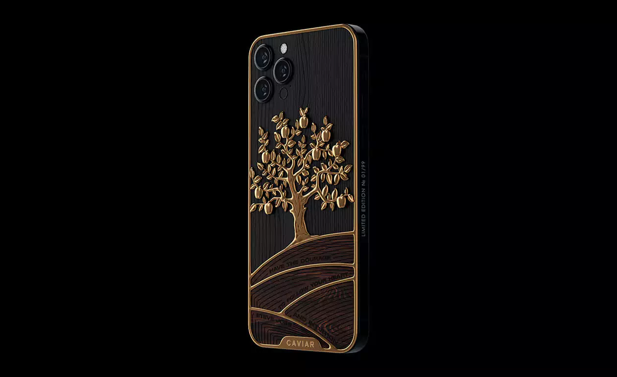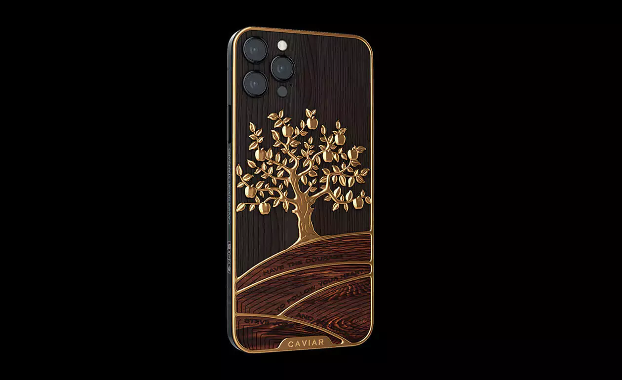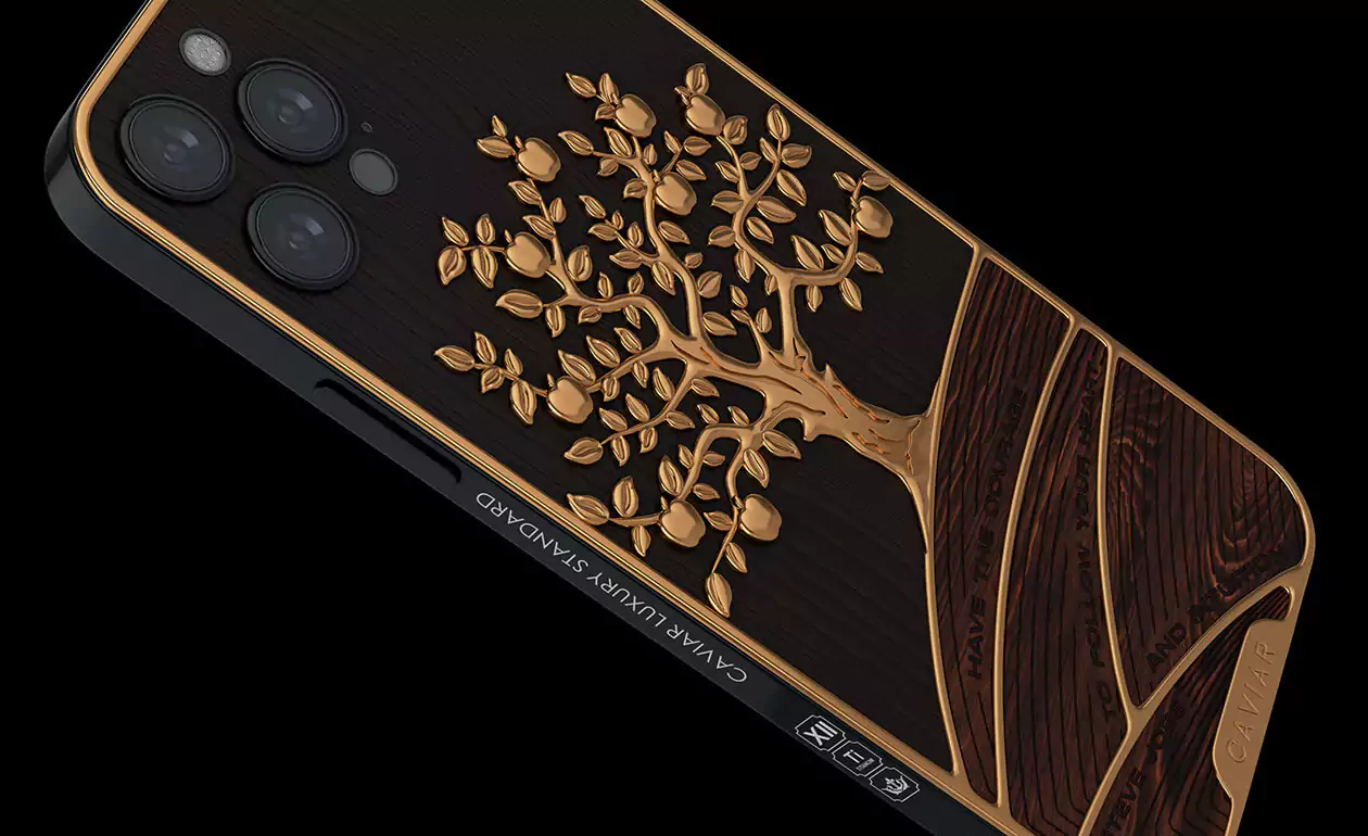 Caviar designers have perfectly embodied the classic luxurious combination of gilding and wood in another masterpiece - the status model iPhone 12 Pro Golden Apple.