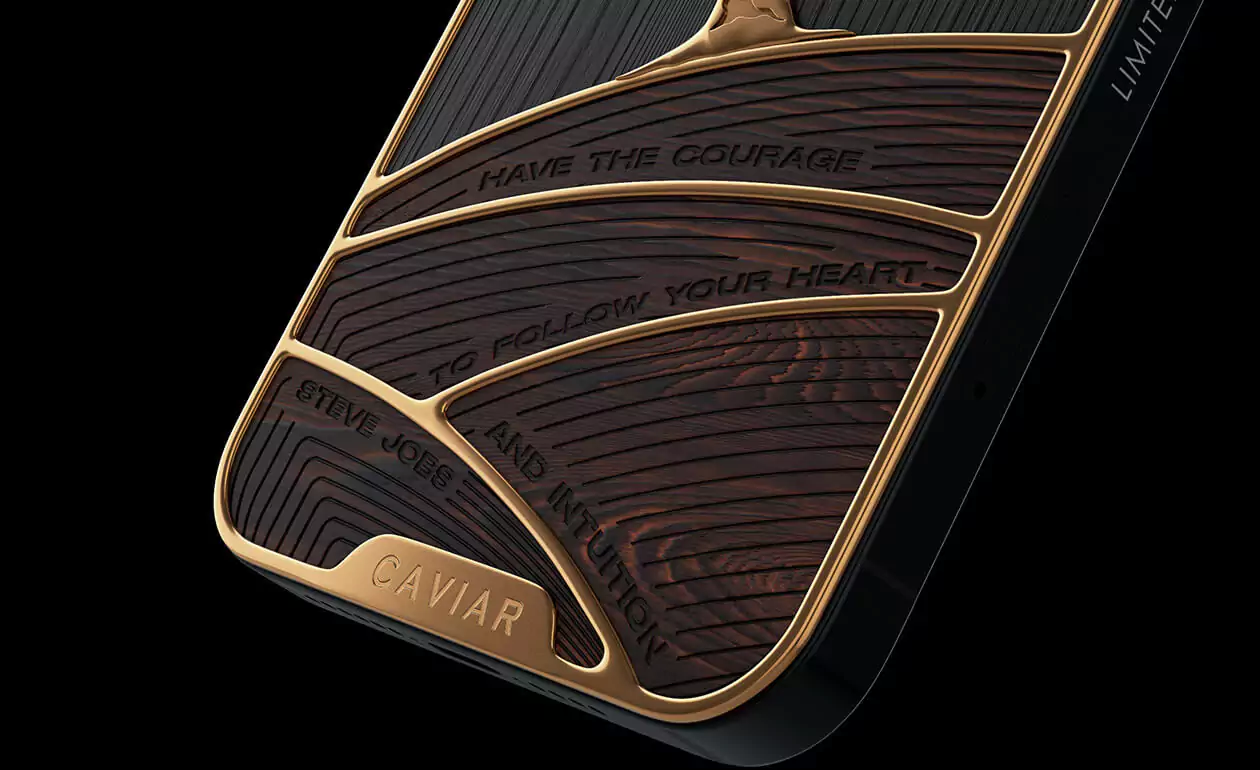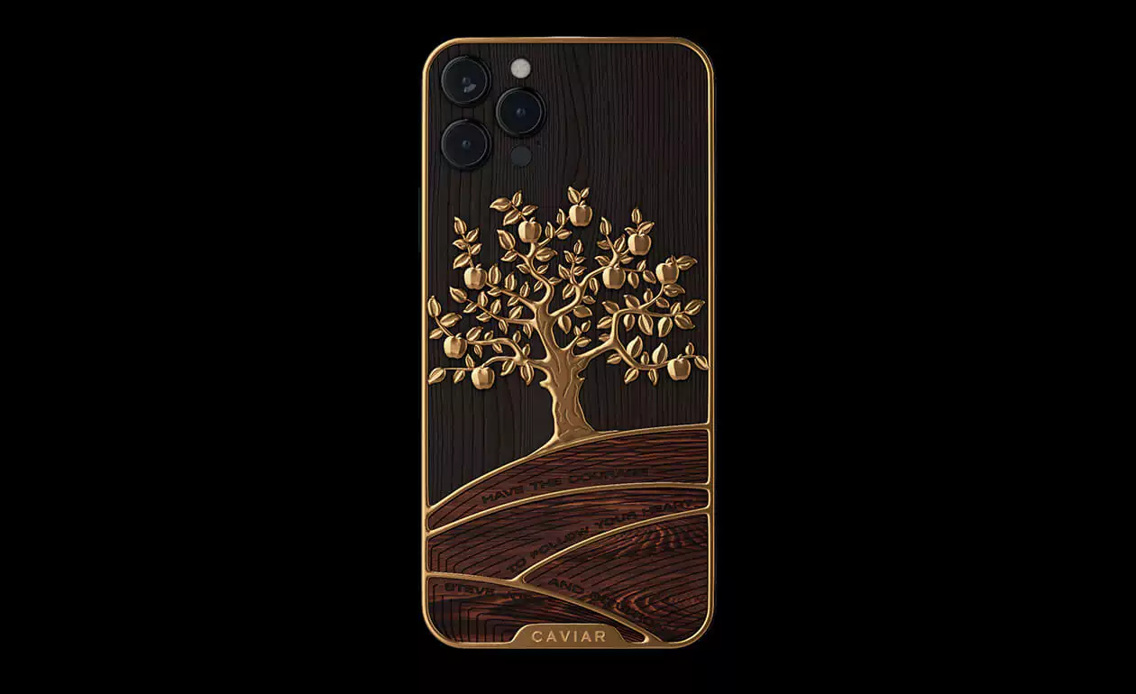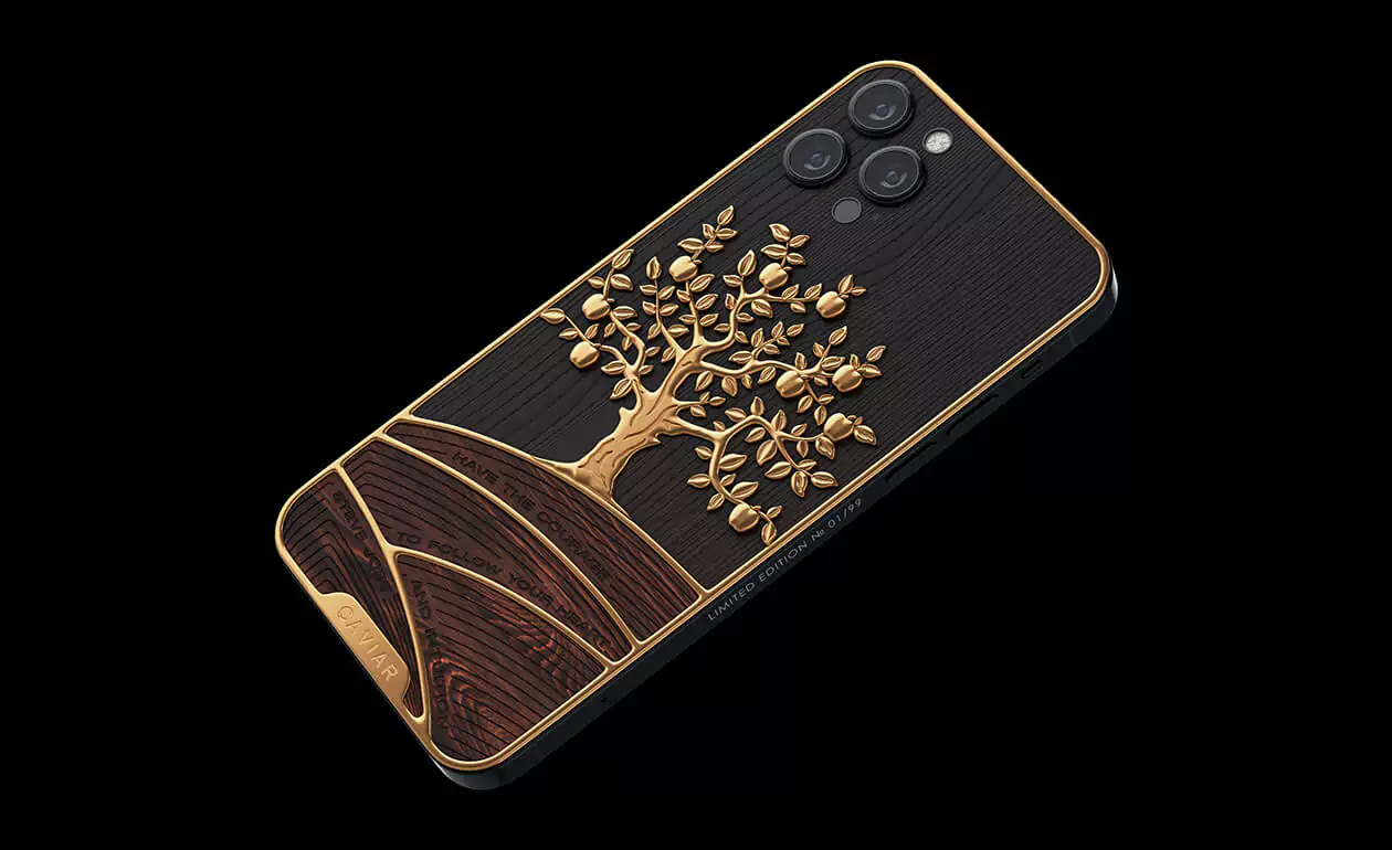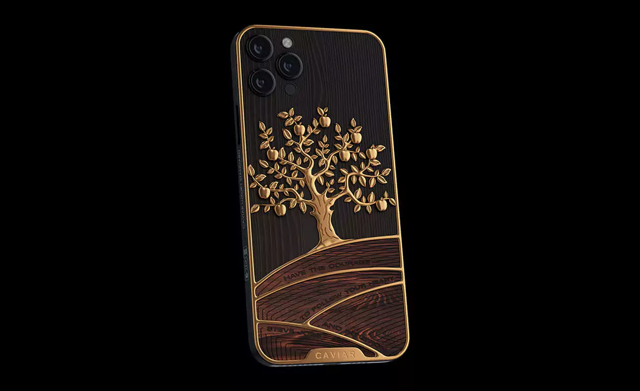 Caviar designers have perfectly embodied the classic luxurious combination of gilding and wood in another masterpiece - the status model iPhone 12 Pro Golden Apple.