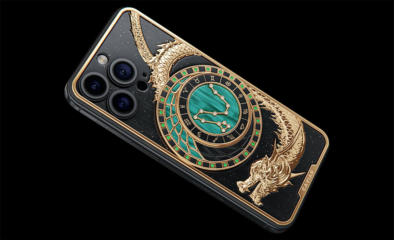 The dragon epitomizes strength and power. The Regal Serpent is truly a majestic custom iPhone, a flagship among flagships, adorned with a bas-relief of a regal dragon. Each golden scale of the serpent is coated with 24-karat gold. At the center of the composition is a three-dimensional image of the dragon constellation, made from Swarovski. Impeccable luxury for those favored by the Eastern dragon.