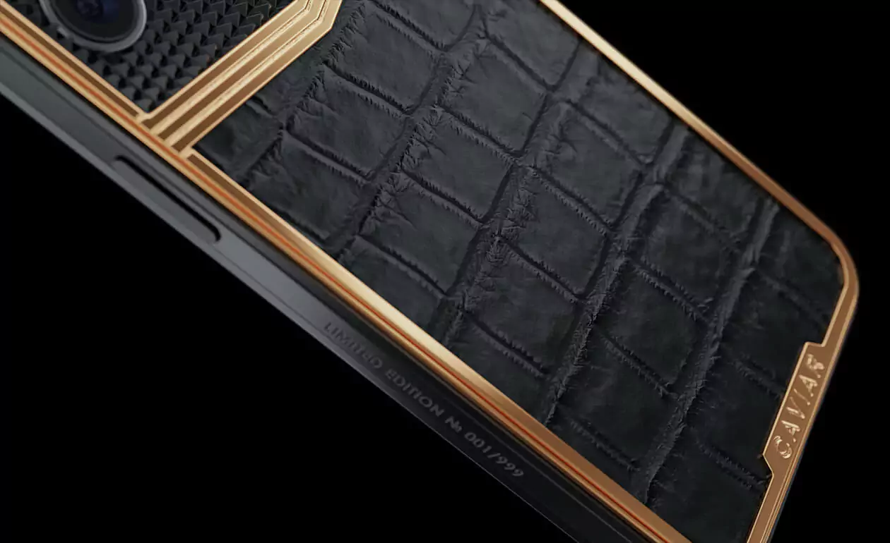 The stylish gold contrasts with an elegant black body made of durable aluminum and real black crocodile leather.
