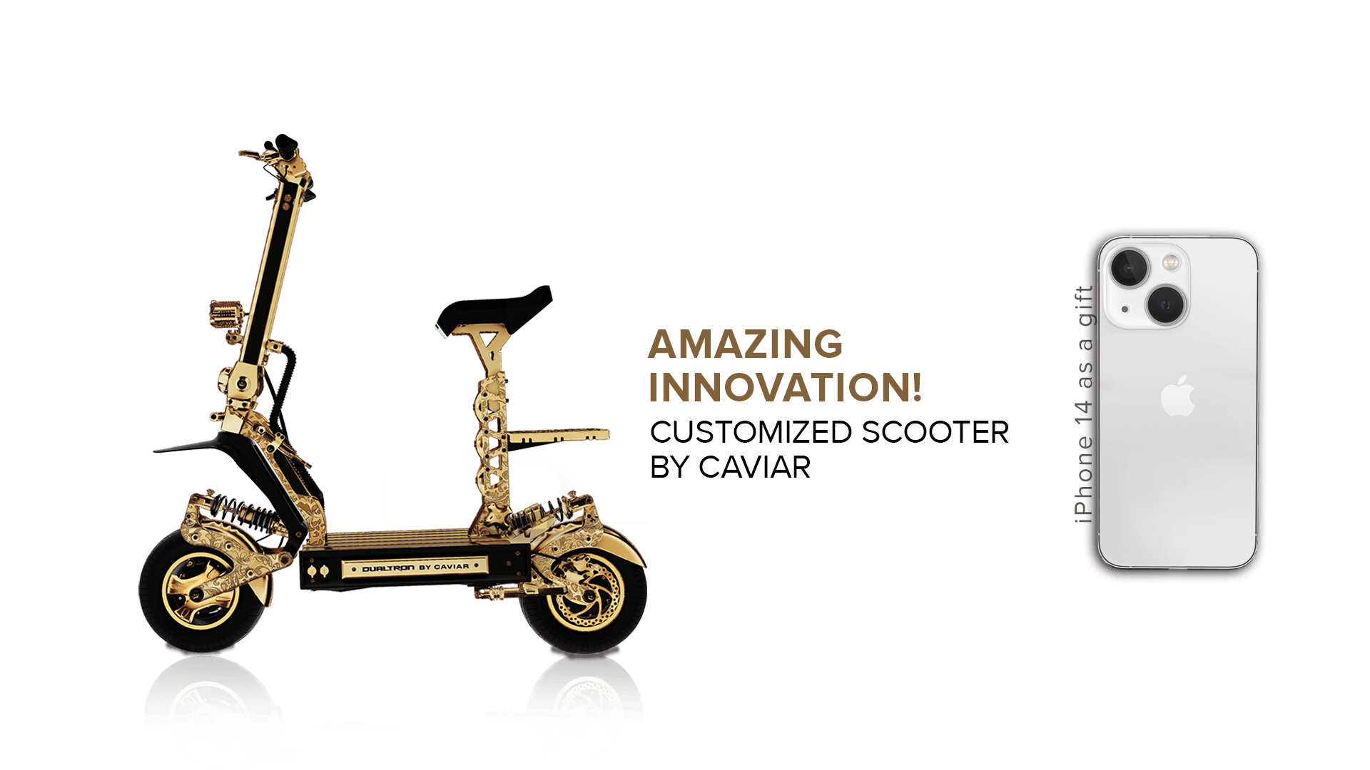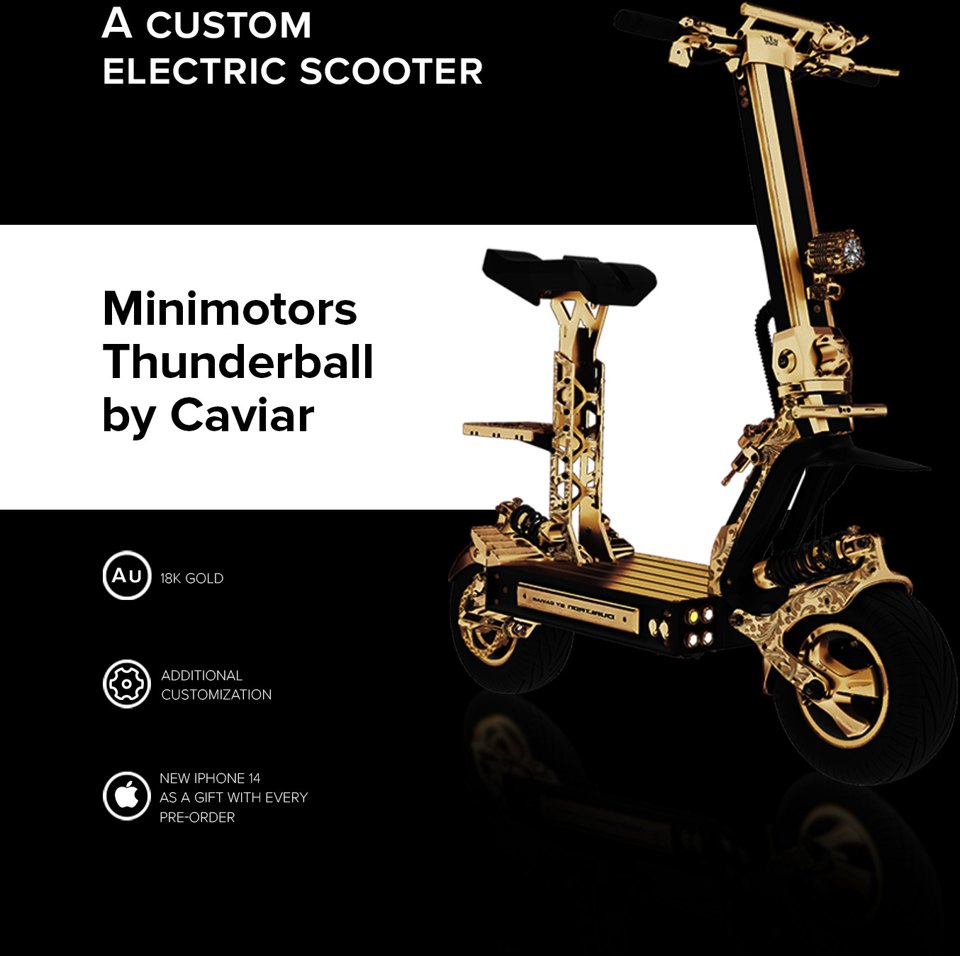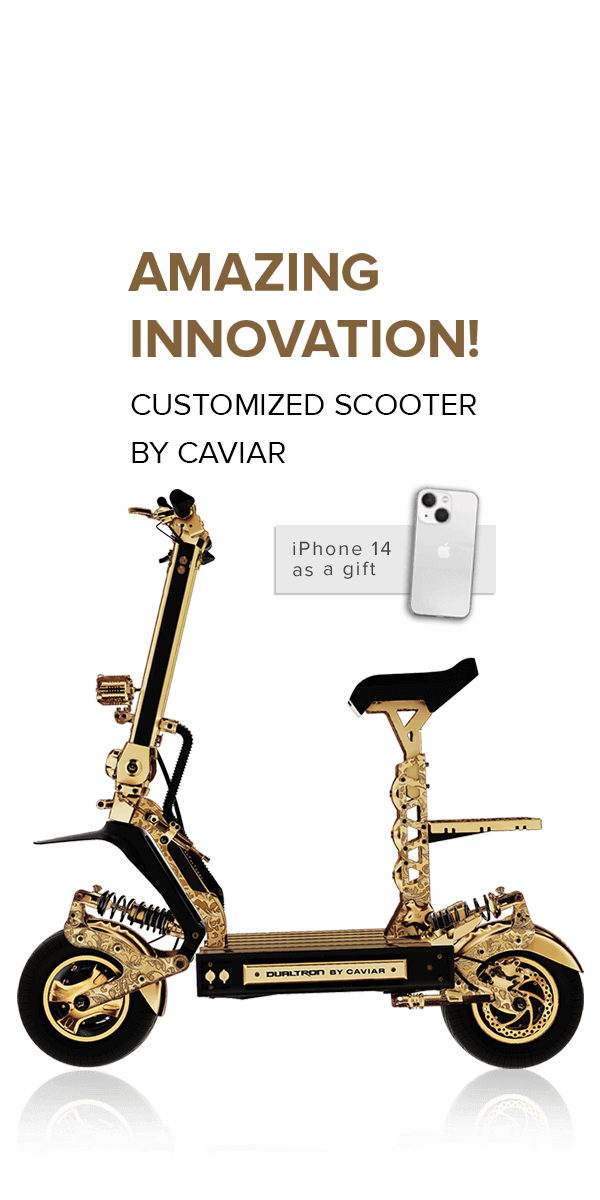 Caviar began as a phone customization bureau, but soon the range of luxury gadgets and accessories expanded to include gaming consoles, smartwatches, and even sneakers. But we never stop looking for new ways to apply our talents in transforming everyday objects into luxurious masterpieces. In 2022, our eyes turned to electric scooters, the most popular trend in recent years, a favorite means of transportation for people tired of polluting cars.