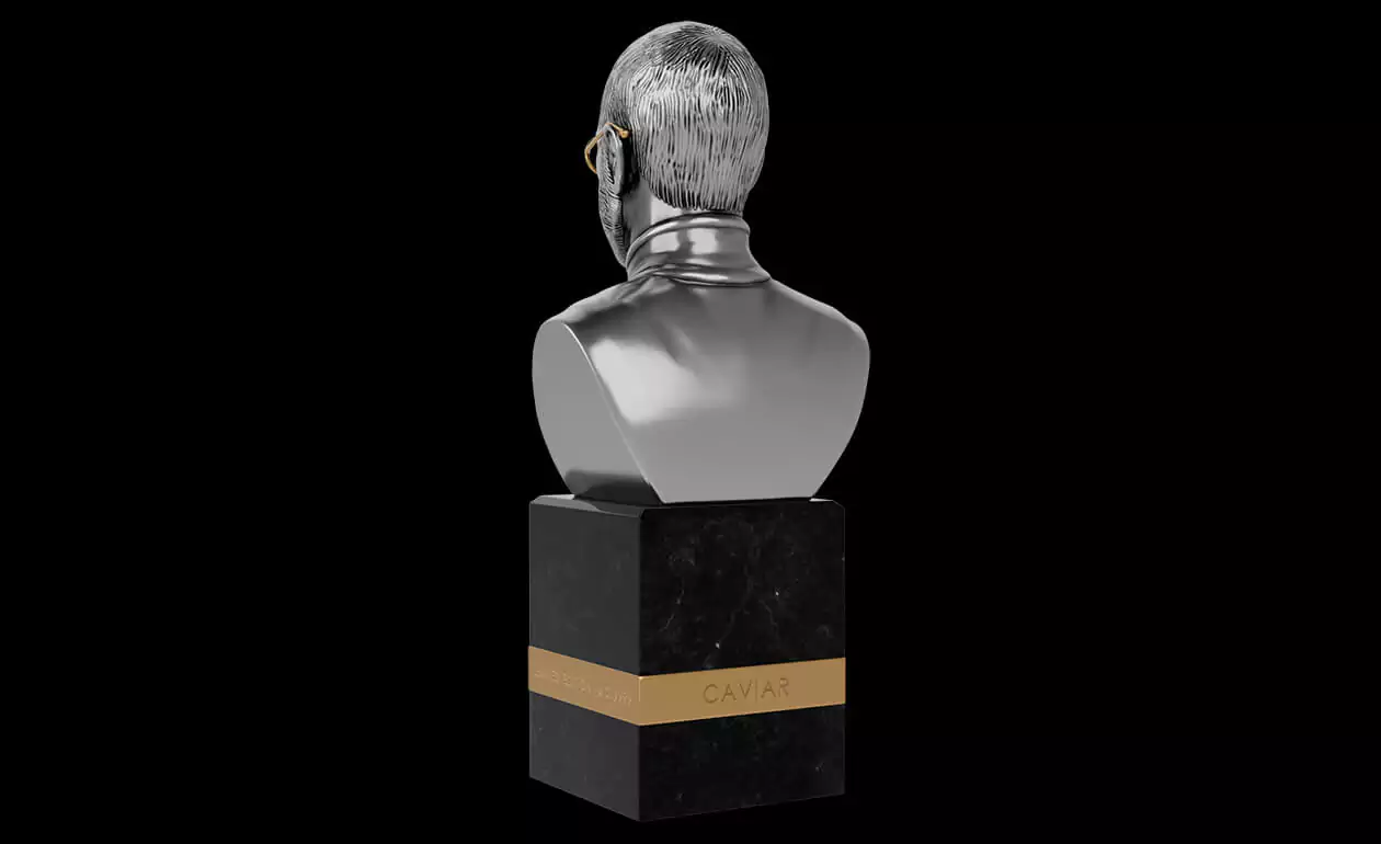 The bust is made of stunningly beautiful nickel-plated brass and put on a strong and durable granite base. The choice of materials is not accidental: only a duet of solid support under your feet and free clear thoughts in your head can create a masterpiece!