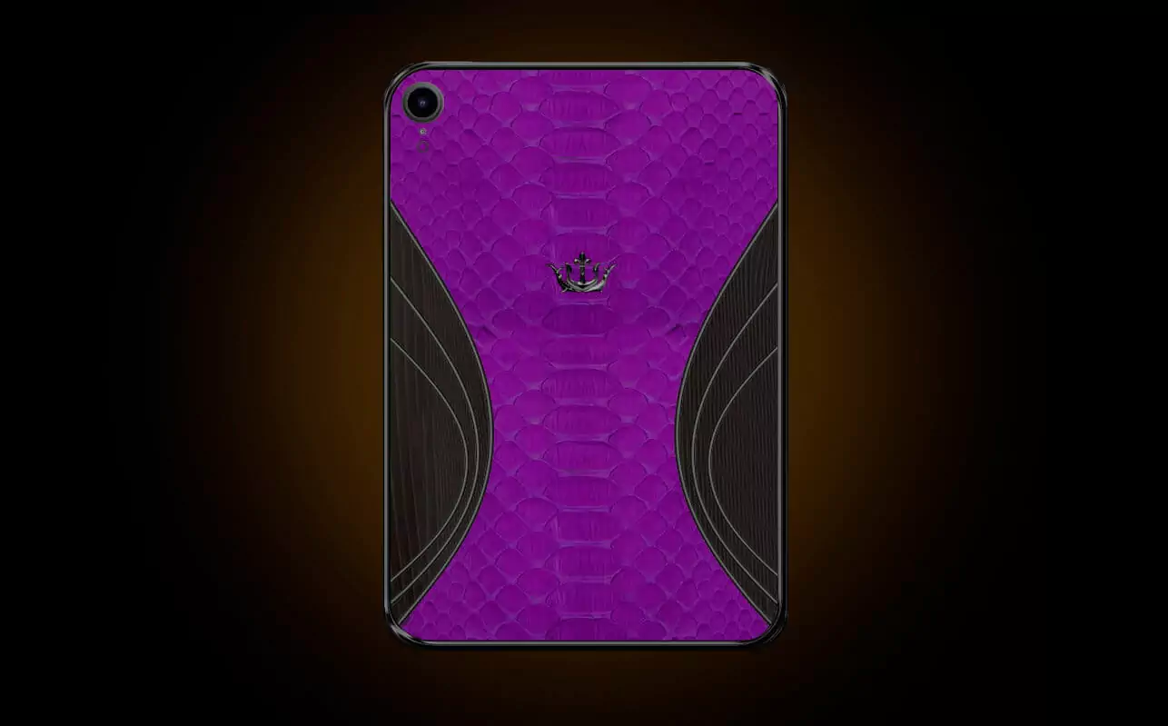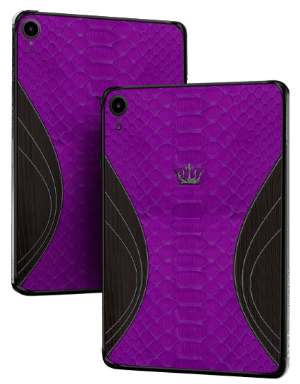 Hypnotizing violet snakeskin leather and deep black tones of bog oak intertwine in the new iPad 6 Mini Violet by Caviar.