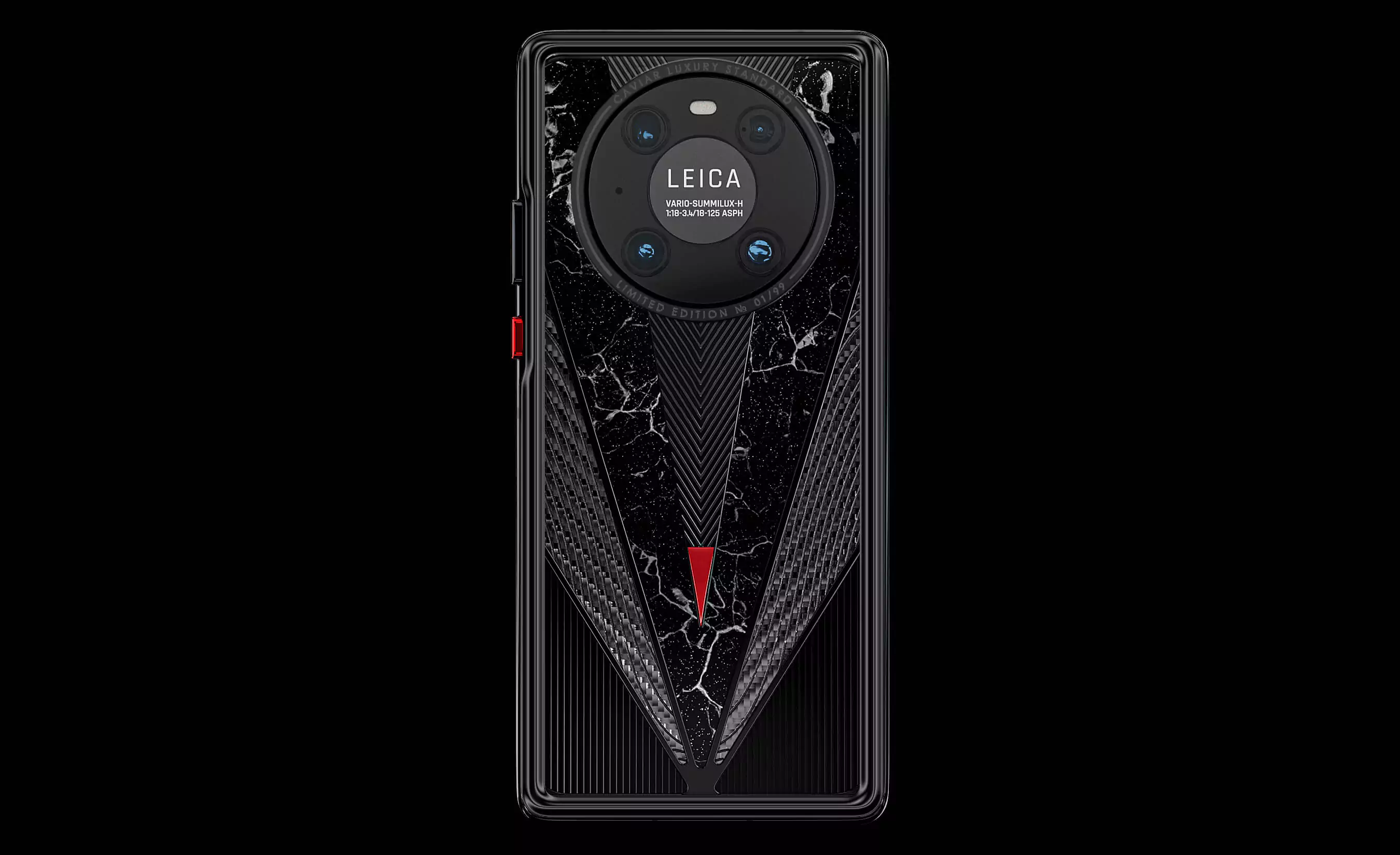 Masculine and slightly soldierly duet of titanium and carbon immediately draws attention to the owner of the gadget. An imitation of a sword with a drop of blood on the tip and black titanium details make the accessory even more dynamic and solid. The combination of black and red looks aggressive, impressive and royal, bringing back the cruel era of the Middle Ages, the time of fearless heroes.