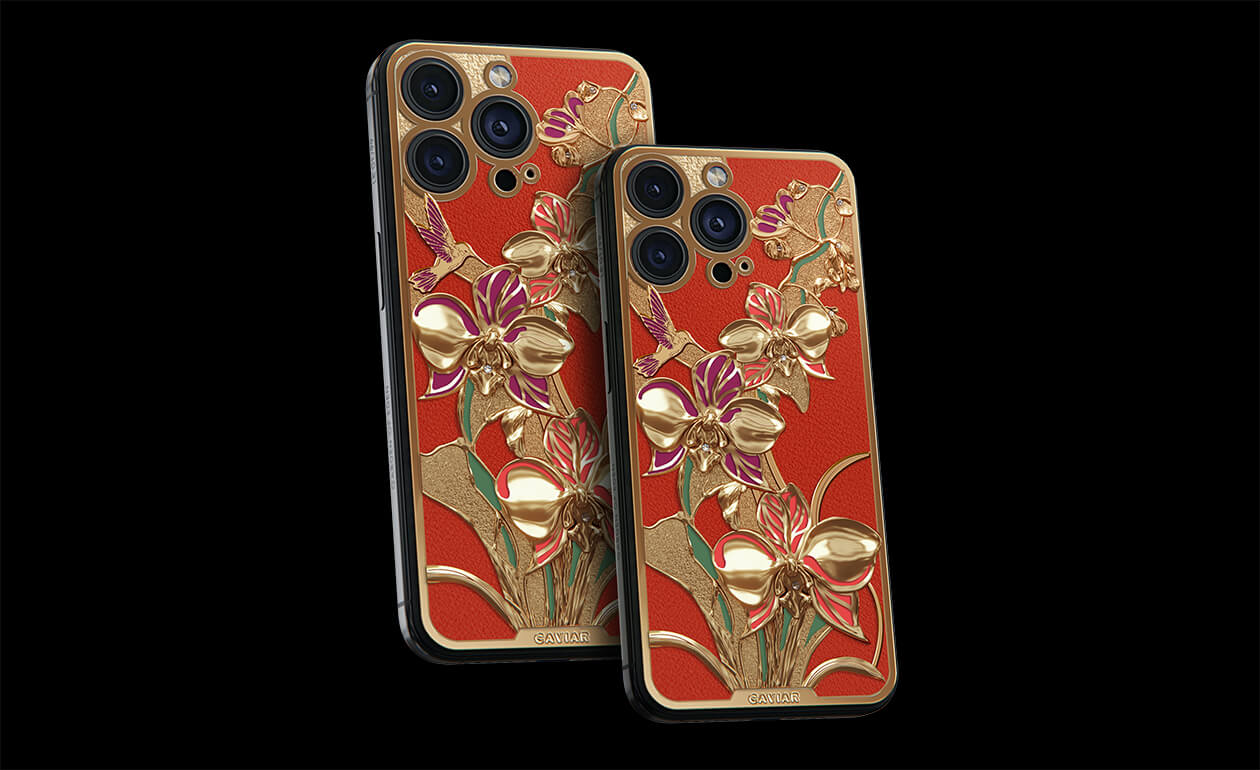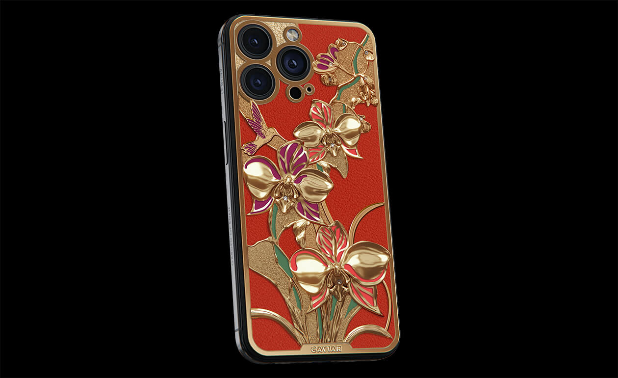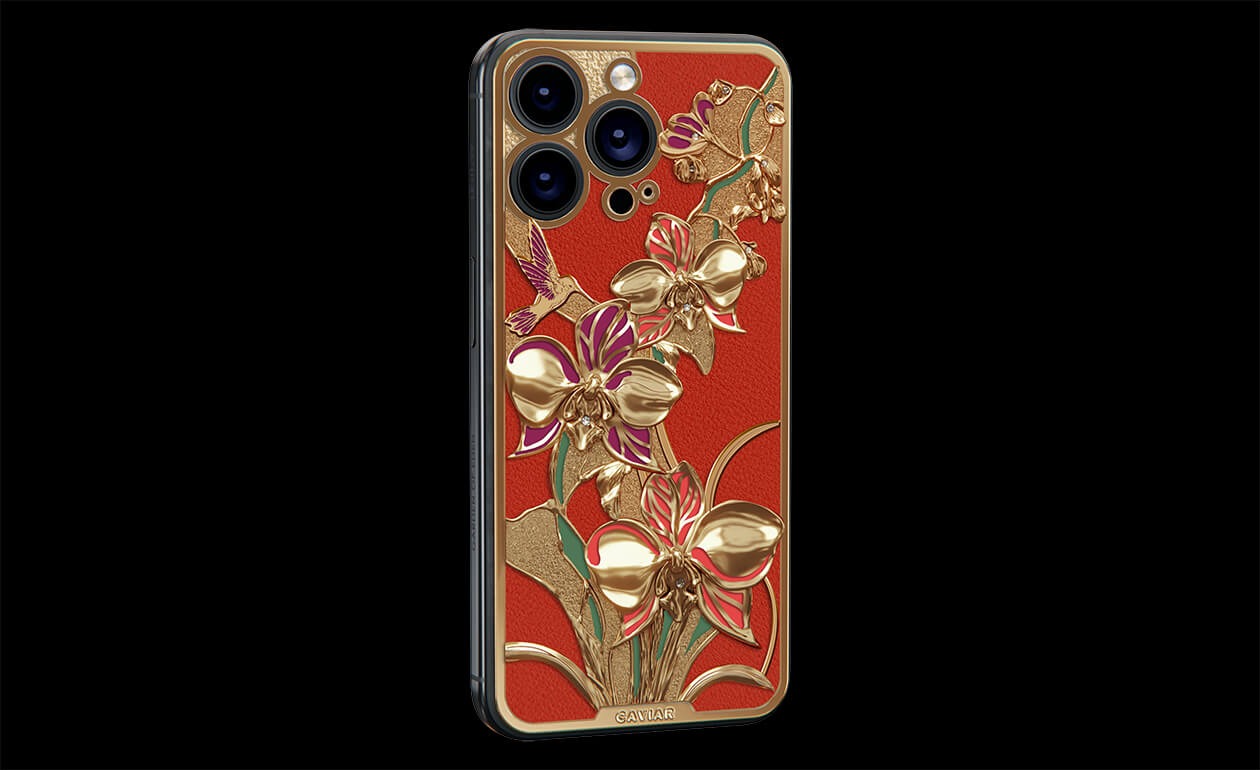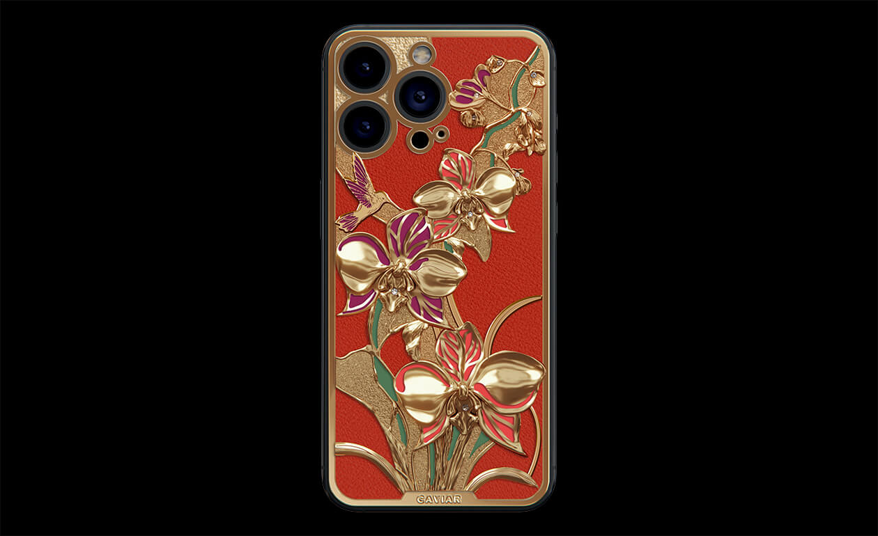 Wild orchids symbolize true love, innocence, and perfection, while the graceful hummingbird adds playfulness and freedom. Together, they create a harmonious combination of nature and technology, making the Wonderful Orchid a unique expression of style. Caviar jewelers have covered the delicate flowers and fluttering hummingbird with 24-karat gold, adorned with colorful enamel and 9 diamonds.