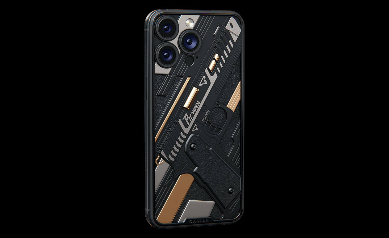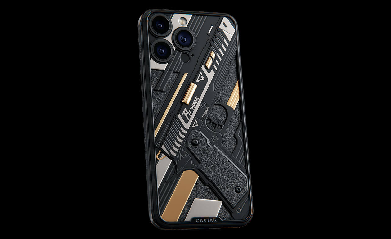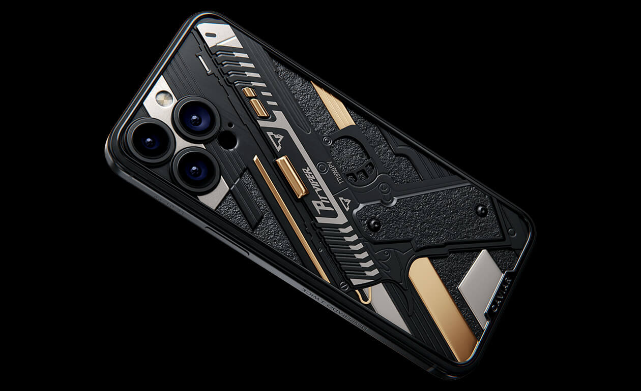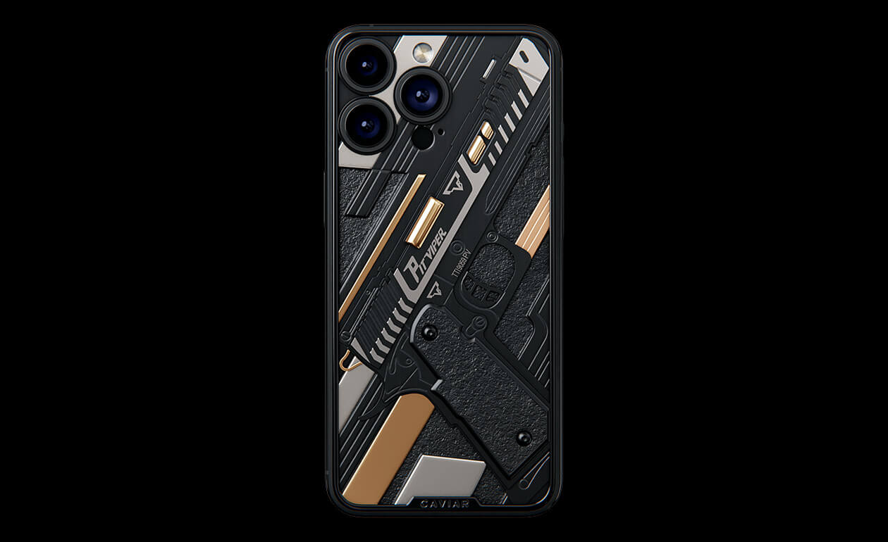 Introducing the iPhone 17 Pro Viper, showcasing John Wick's formidable weaponry. The design of this custom device embodies the style and precision of the professional assassin. Every detail is crafted from luxurious materials to convey the atmosphere of the iconic action movie. The titanium parts of the gun are coated with PVD, just like in the finest Swiss watches, and some elements are adorned with 24K gold.