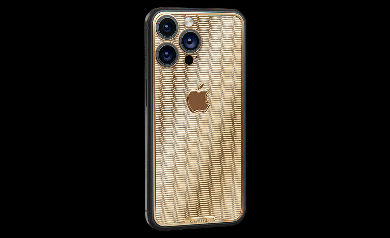 The divine solar glow embodied on the iPhone's body. Caviar has created a device that narrates the story of jewelry craftsmanship from ancient times. Impeccable artistry in working with gold from antiquity. The pattern quotes Roman motifs, becoming a golden ideal for modern art.