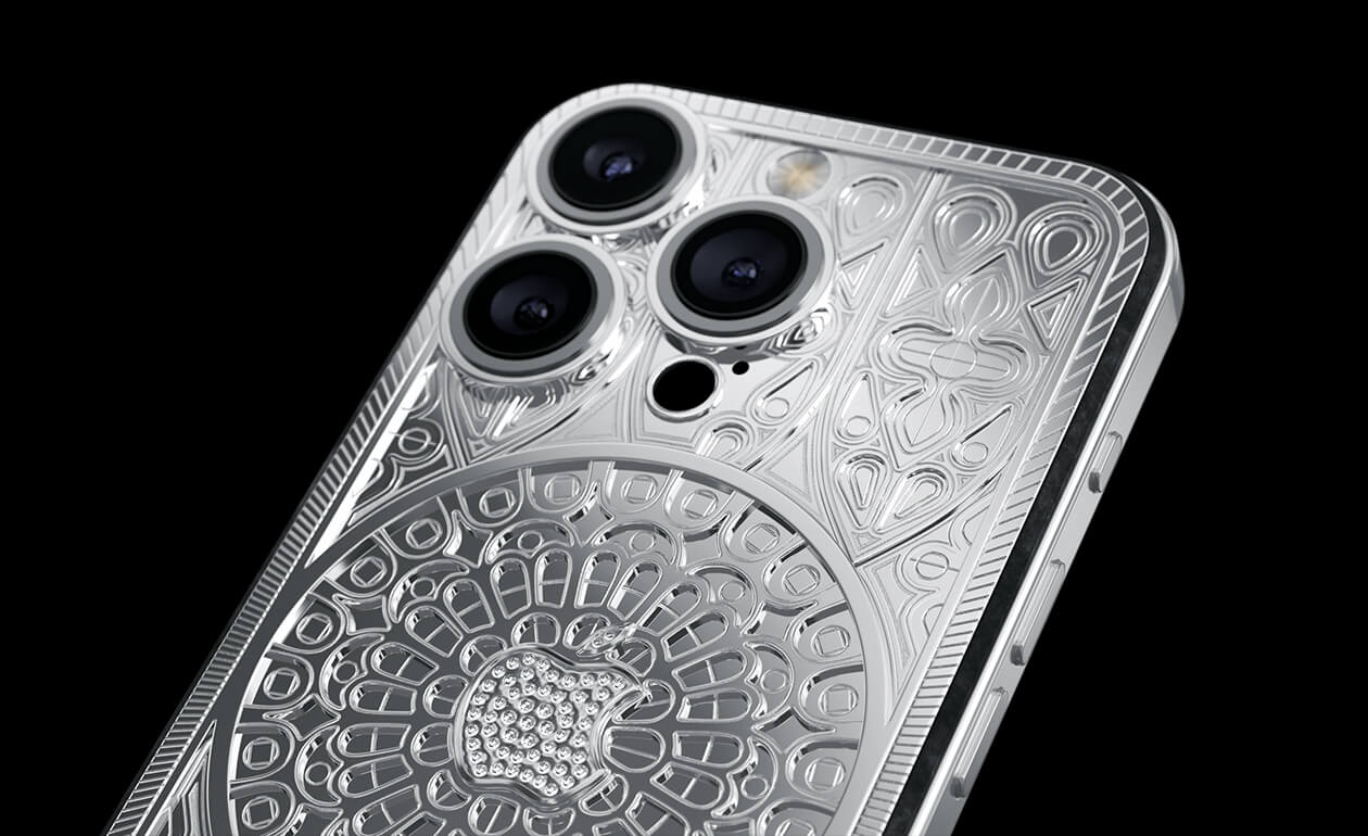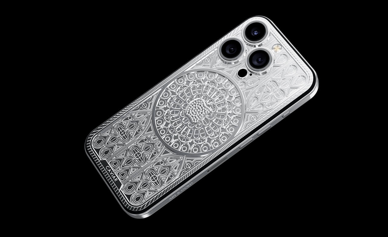 The Caviar iPhone Notre Dame, crafted in a Gothic style, reflects the majestic beauty of architectural masterpiece with its soaring arches and stained glass windows.