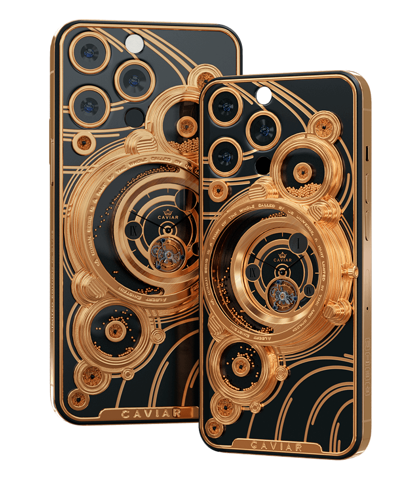 Majestic, monumental, grandiose - these are the epithets that come to mind when you first look at the Caviar iPhone 14 Pro Parade of the Planets Golden.