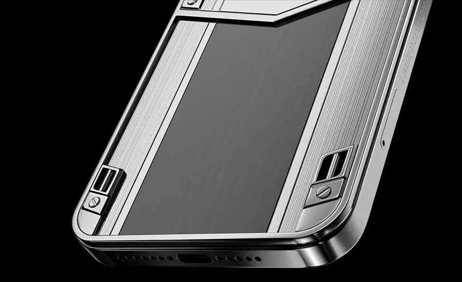 The natural beauty of black ebony and tempered titanium captured the hearts of Caviar jewelers and inspired them to create a unique phone in Vertu style.