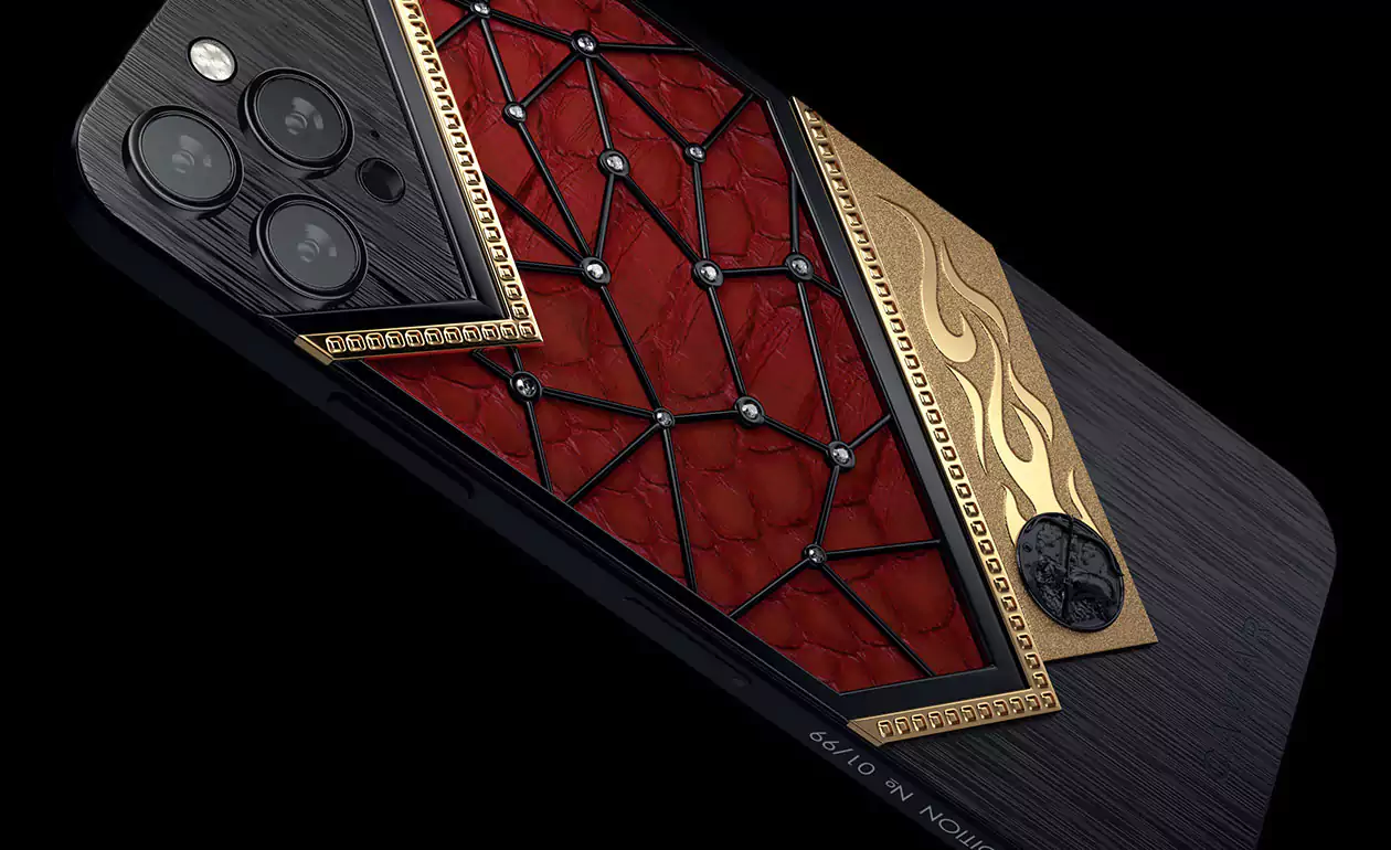 However, if this Sagittarius hasn’t got iPhone by Caviar with the astronomic design interpreting the Zodiac signs yet, then seems like you’ll finally manage to surprise him! The appearance of this extraordinary smartphone presents a remarkable composition in the combination of gold-plated elements, diamonds, black and red colors. The main accent in the design is the figure of the Sagittarius constellation laid out with diamonds on the titanium net.