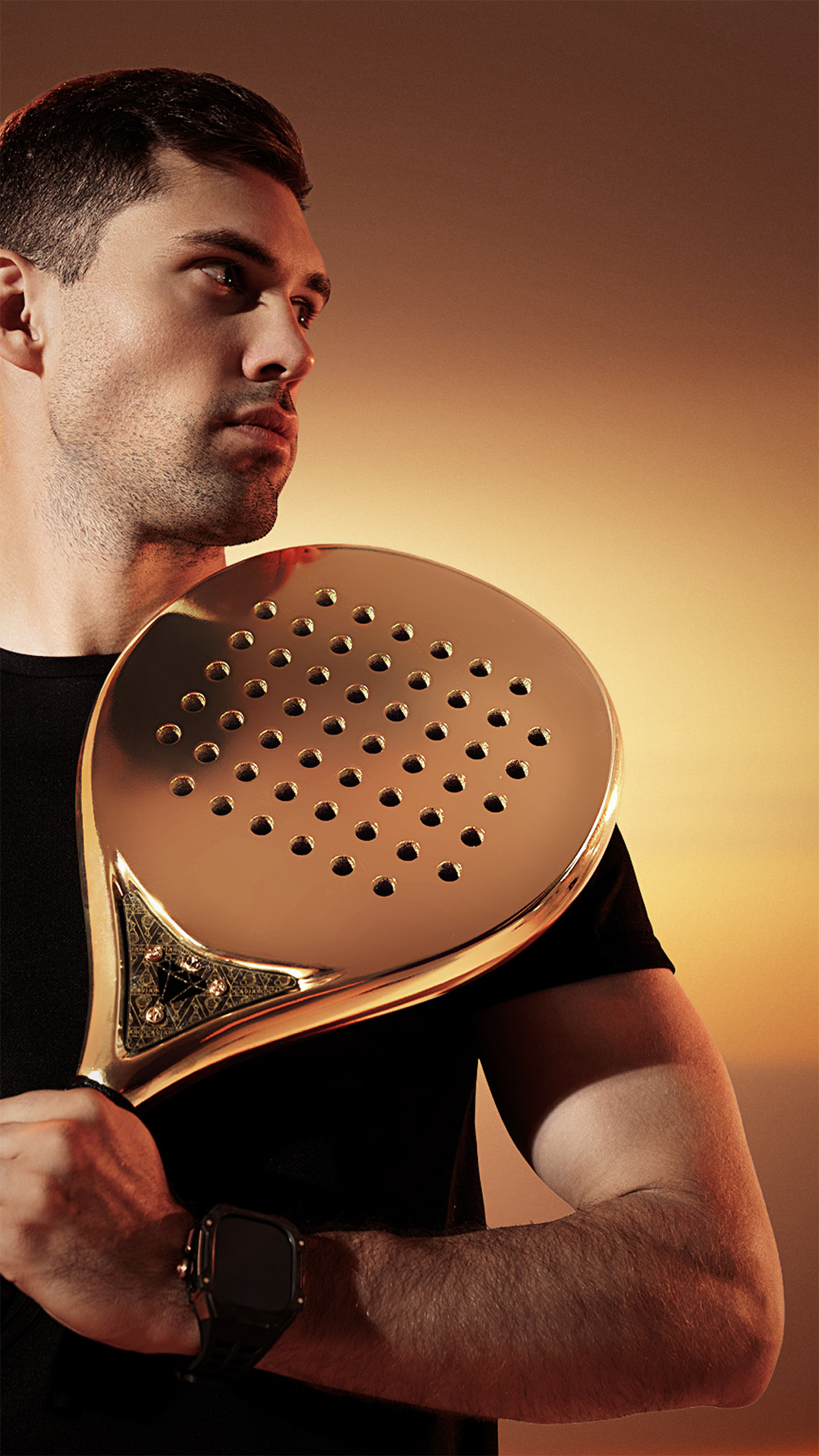 Padel has quickly become the sport of choice for a new generation of tastemakers, from Hollywood stars to Arab royalty. Its profile was significantly raised by advocates like Dubai's Crown Prince Hamdan bin Mohammed Al Maktoum, who helped establish padel as a true lifestyle statement. The golden racket is named Altair, after the star with an Arabic name — an astronomical and cultural tribute to the UAE, which has played a key role in the rise of padel worldwide.