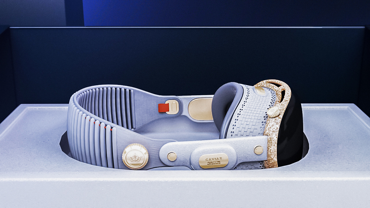 We are entering the final stage of development for the Caviar Apple Vision Pro. Meet the "White Tiger", a sleek and sophisticated take on Apple's groundbreaking device, crafted with white perforated leather and gold plated accents. The tentative launch date for the Apple spatial computer by Caviar is September 2024.
