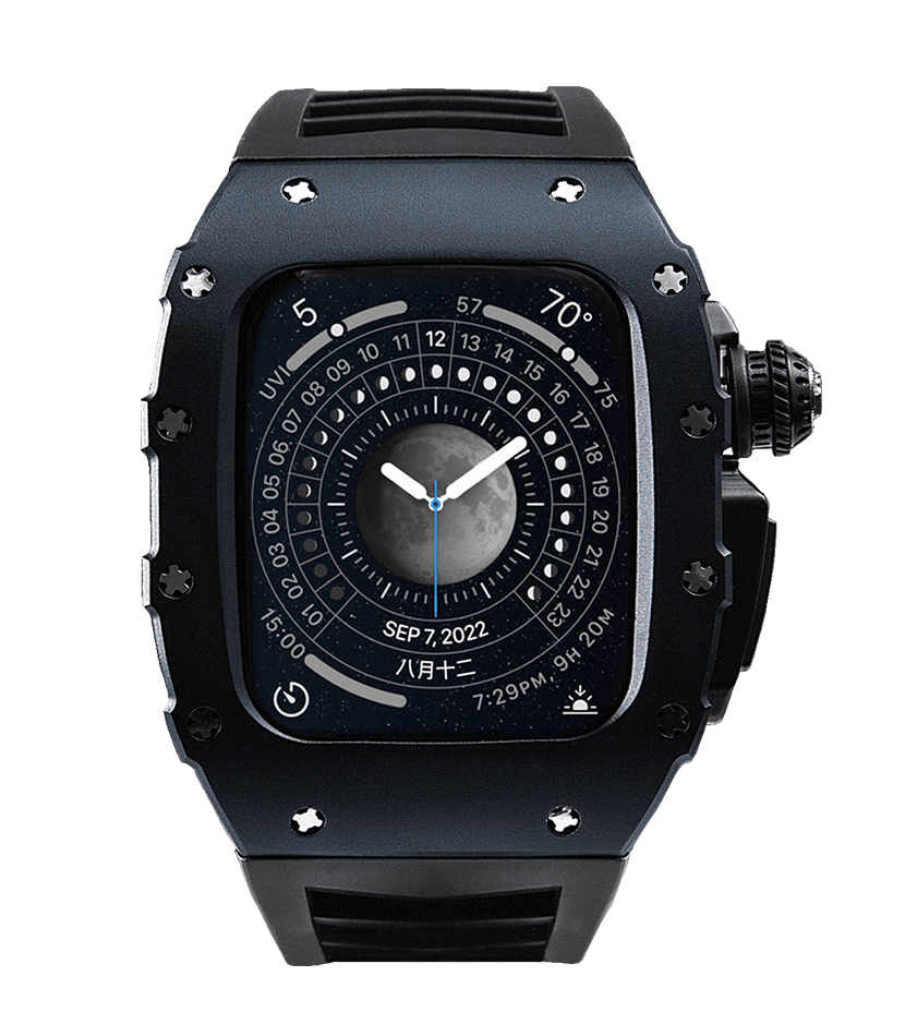 Supreme Midnight is a detachable case for the Apple Watch made of super-lightweight aluminum with a black anodized coating. This metal is widely used in the aerospace industry and in car manufacturing. Thanks to decorative bolts in the form of bright stars, it will seem that your watch is shining in the frame of the starry sky.